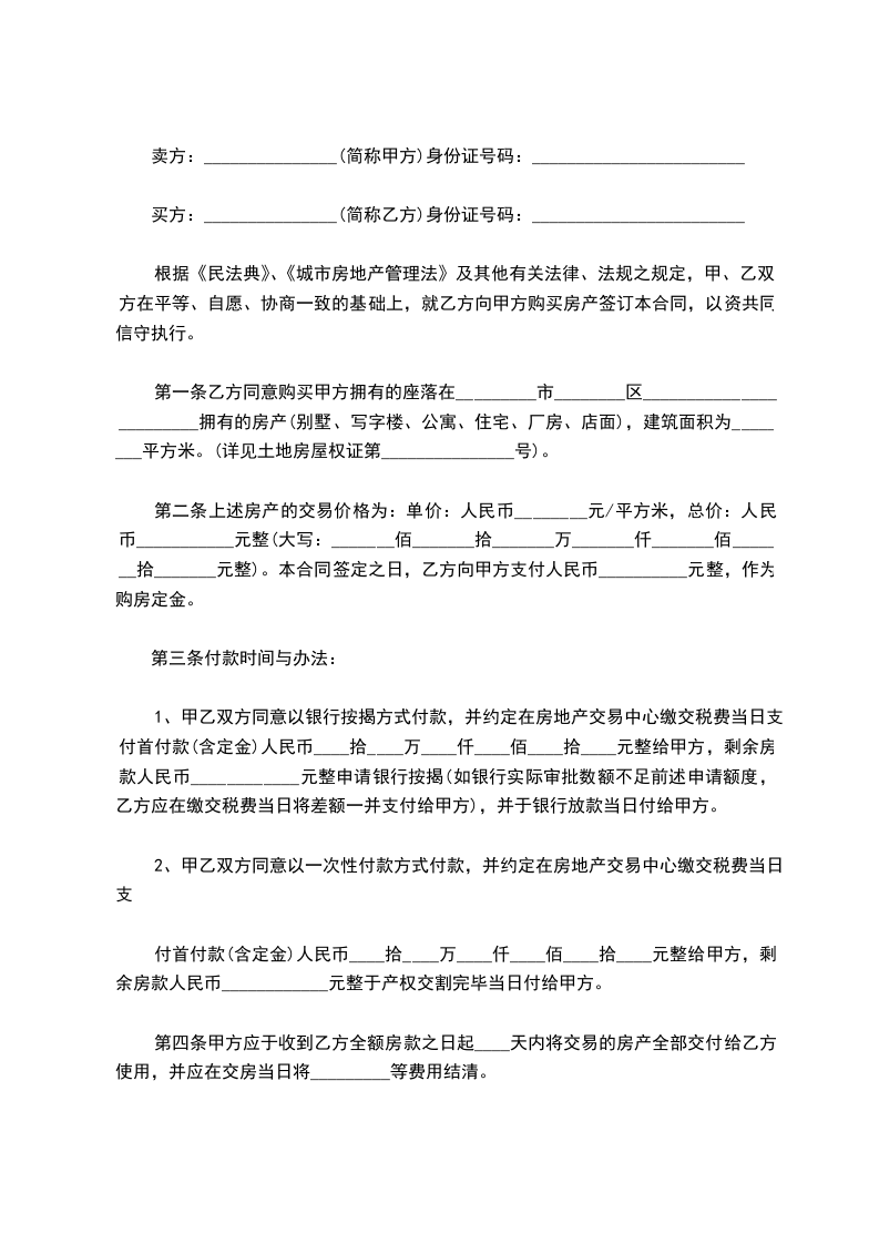 1、此房价成交总价为:(人民币)________________元。