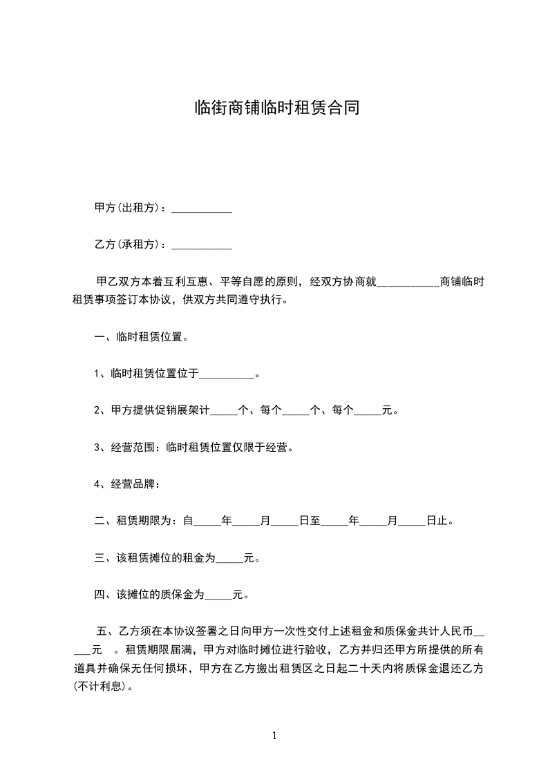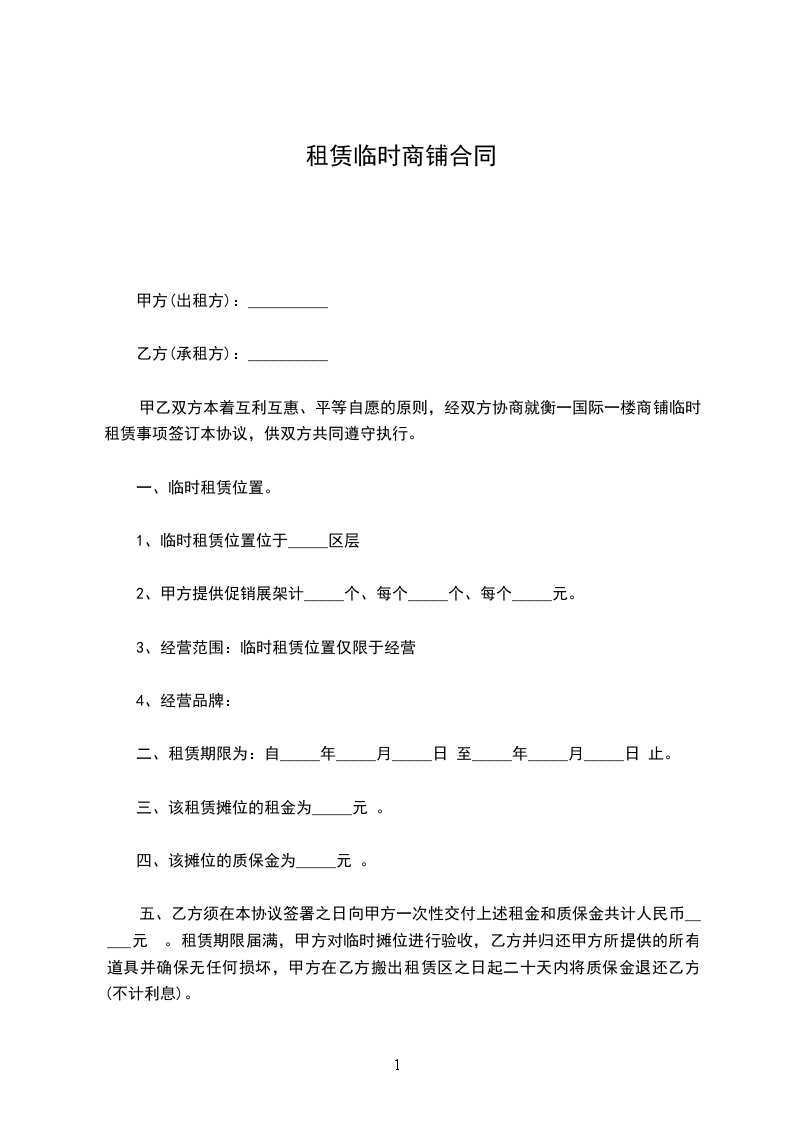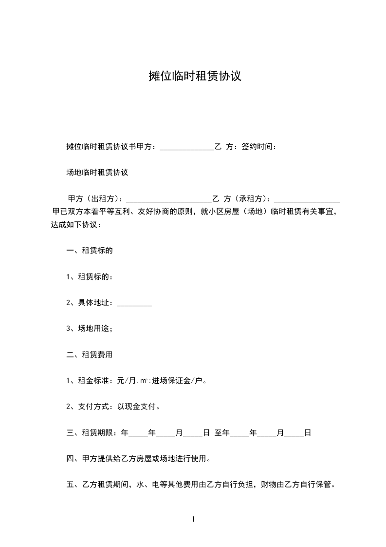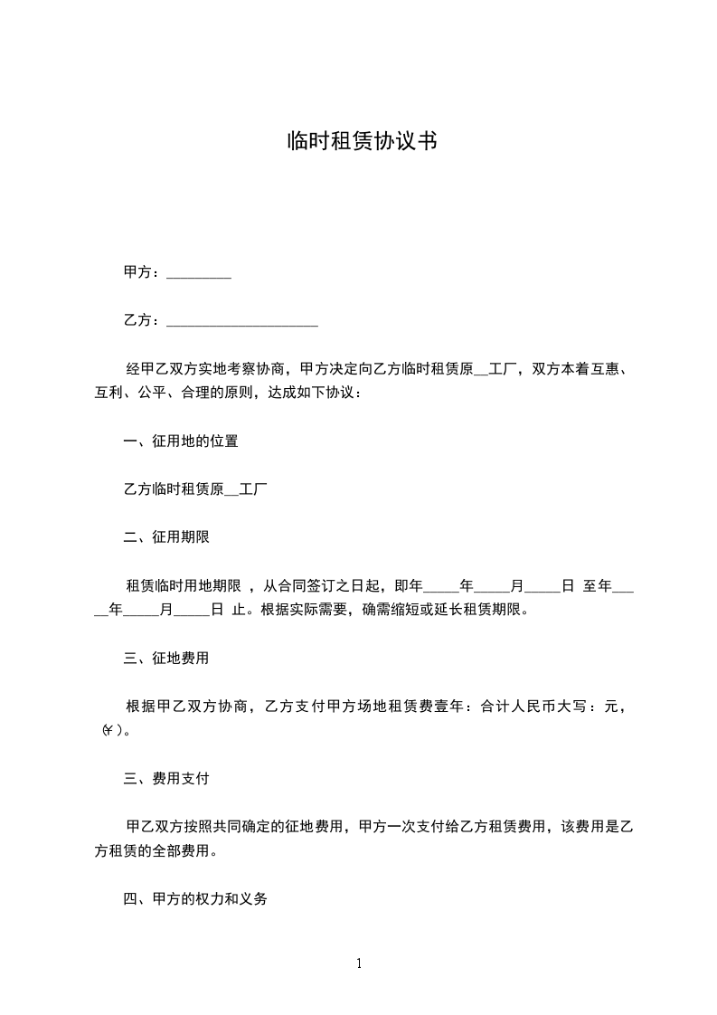 经甲乙双方实地考察协商,甲方决定向乙方临时租赁原__工厂,双方本着互惠、互利、公平、合理的原则,达成如下协议: