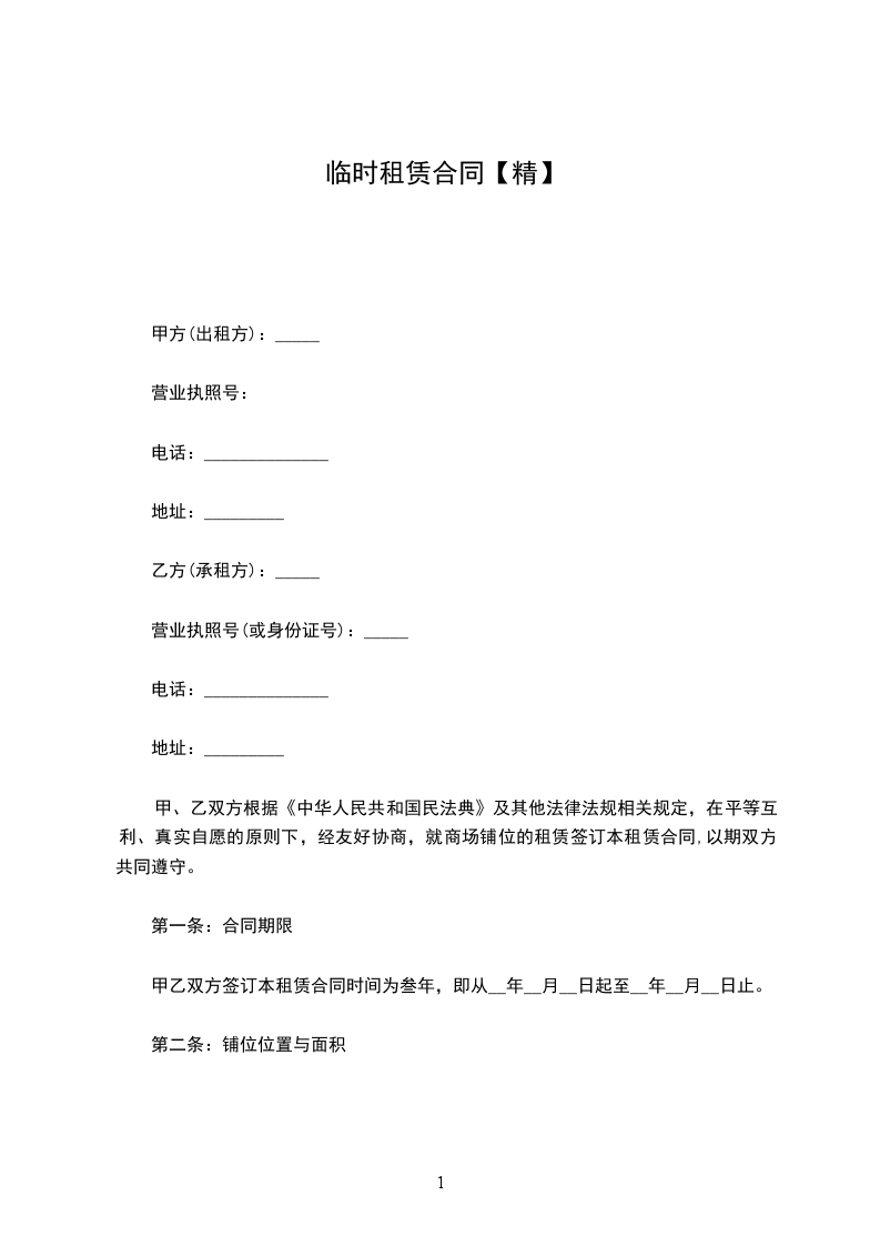 租赁临时用地期限 ,从合同签订之日起,即年_____年_____月_____日 至年_____年_____月_____日 止。根据实际需要,确需缩短或延长租赁期限。