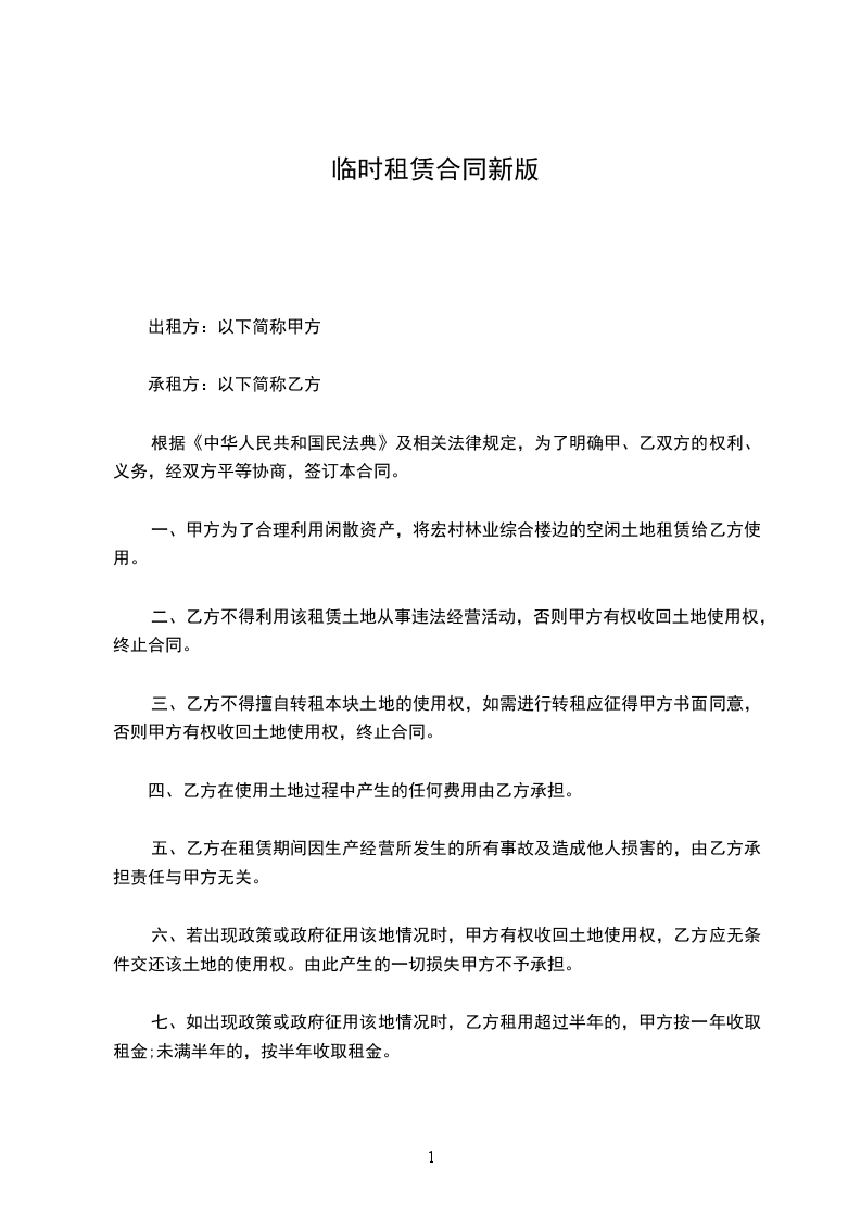 1、甲乙双方指定、认可的范围内临时占用土地,并按合同约定支付给甲方租赁费用。