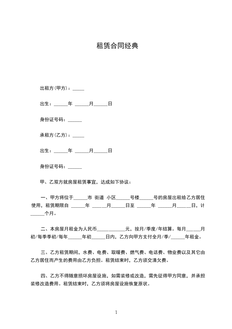 1、租赁期限:租赁期为自年______月______日至______年______月______日止,在租赁期内,如因乙方原因提前终止租赁合同,乙方所付租金不予退还。如因甲方原因提前终止租赁合同,甲方除应赔偿给乙方造成的全部损失外,还应向乙方支付违约金______元。如果甲方期满后不续租,要提前一个月通知乙方。如乙方租期满后不续租,也需提前一个月通知甲方,并在期满后三日内搬出,否则按______年租金的1%收取租金。
