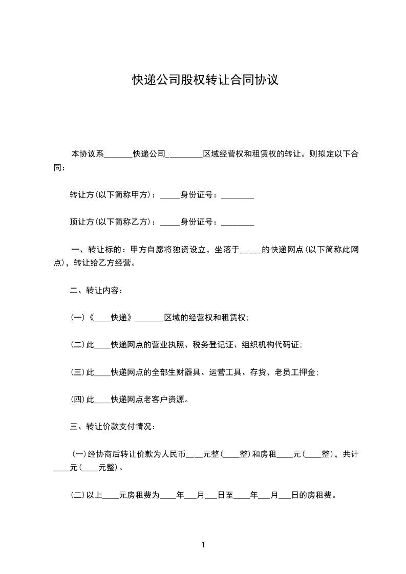 9、无论乙方购买股份占好多,甲方都对快递经营有决定权。