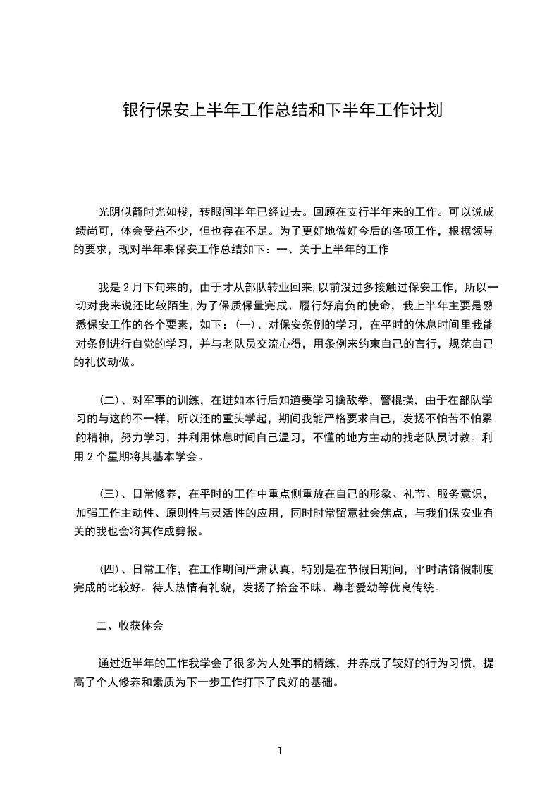 光阴似箭时光如梭,转眼间半年已经过去。回顾在支行半年来的工作。可以说成绩尚可,体会受益不少,但也存在不足。为了更好地做好今后的各项工作,根据领导的要求,现对半年来保安工作总结如下:一、关于上半年的工作