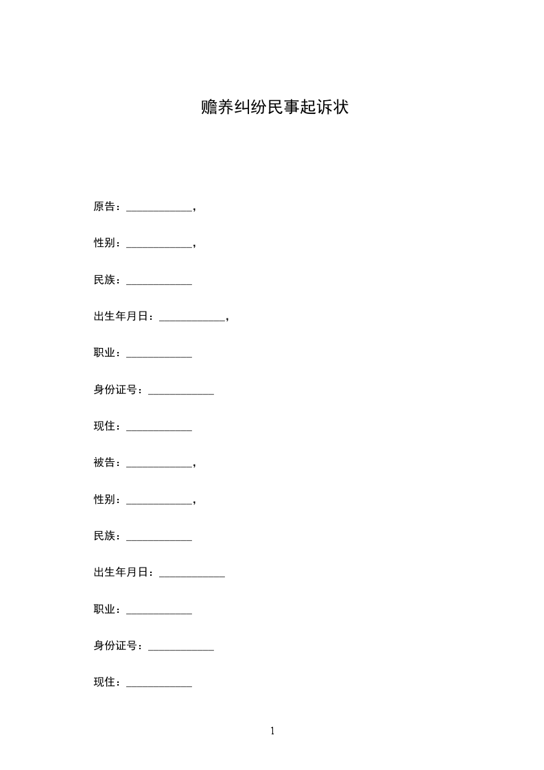 1、请求判令被告承担原告的基本生活费即每年给付原告生活费用 元,按月支付,于每月5日之前支付当月生活费。