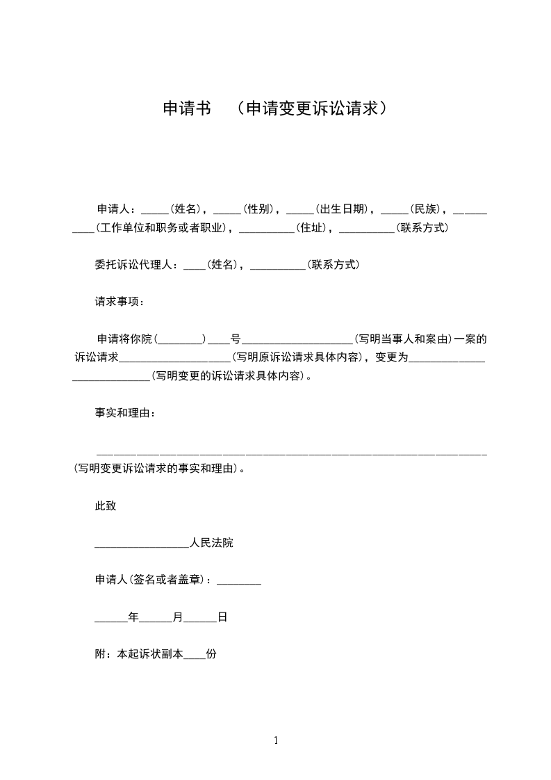 申请将你院(________)____号____________________(写明当事人和案由)一案的诉讼请求____________________(写明原诉讼请求具体内容),变更为____________________________(写明变更的诉讼请求具体内容)。
