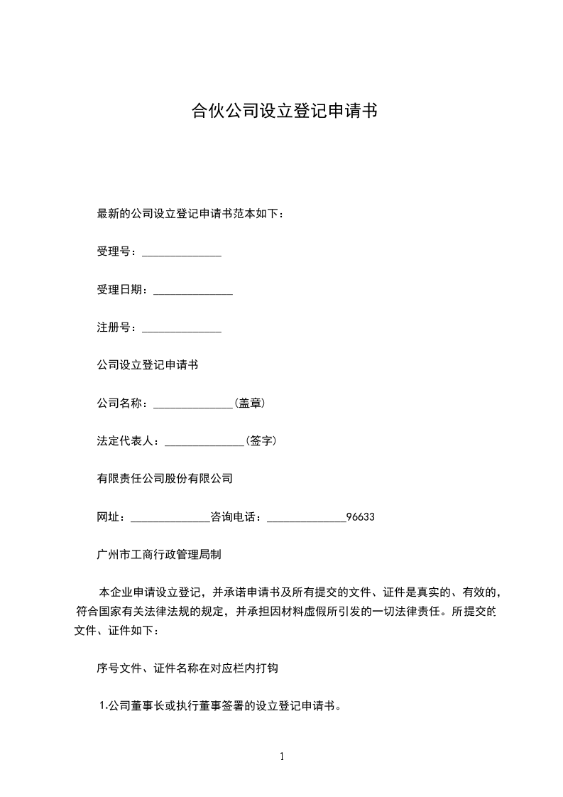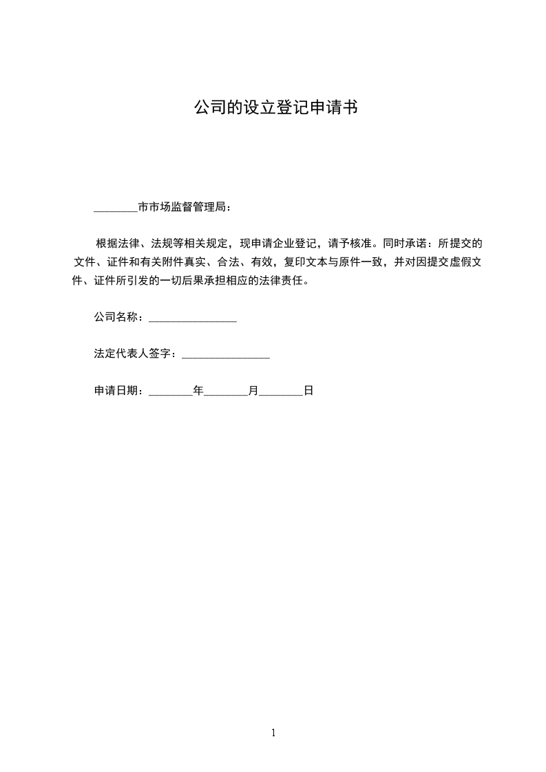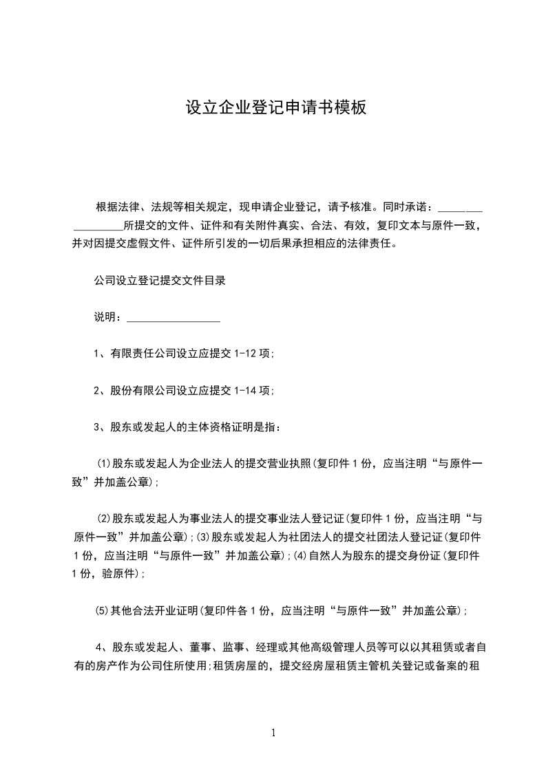 1、本申请书适用于有限责任公司、股份有限公司向公司登记机关申请设立登记。