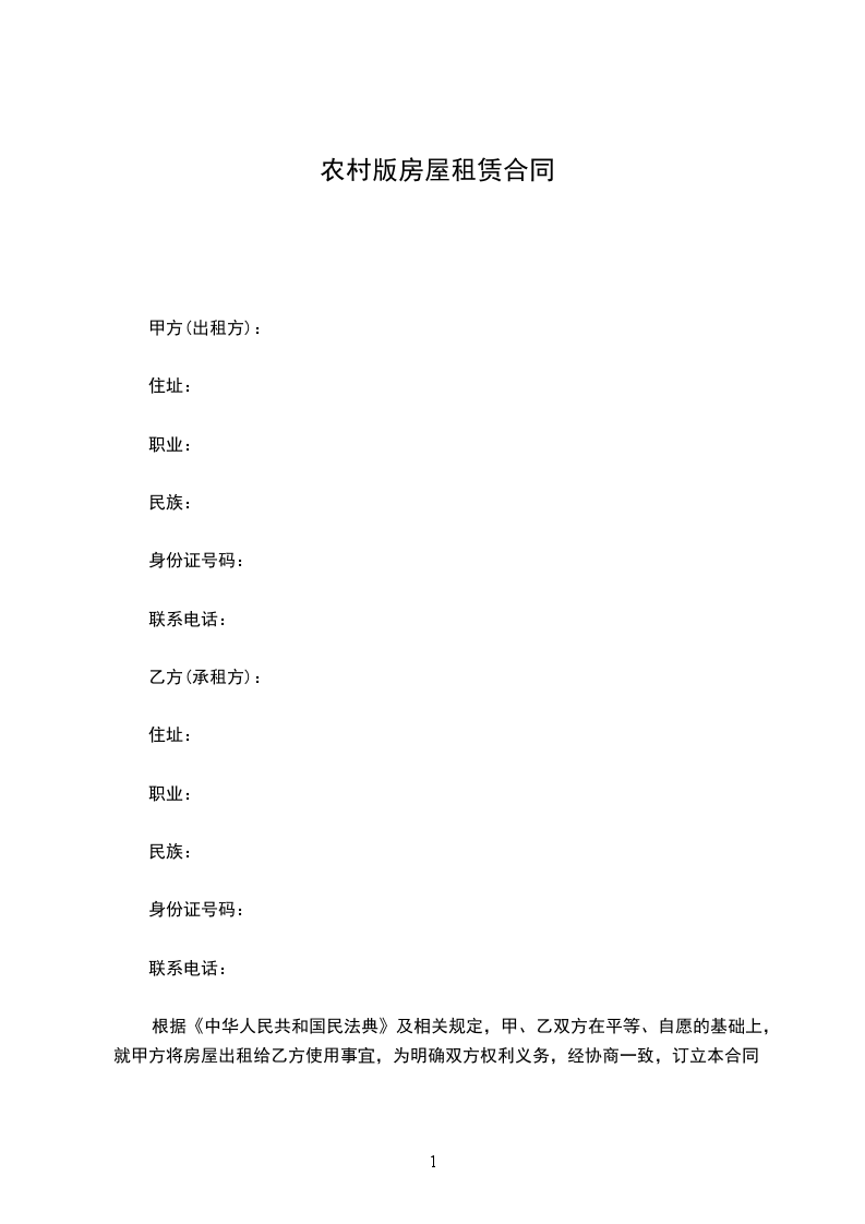 根据《中华人民共和国民法典》及相关规定,甲、乙双方在平等、自愿的基础上,就甲方将房屋出租给乙方使用事宜,为明确双方权利义务,经协商一致,订立本合同。