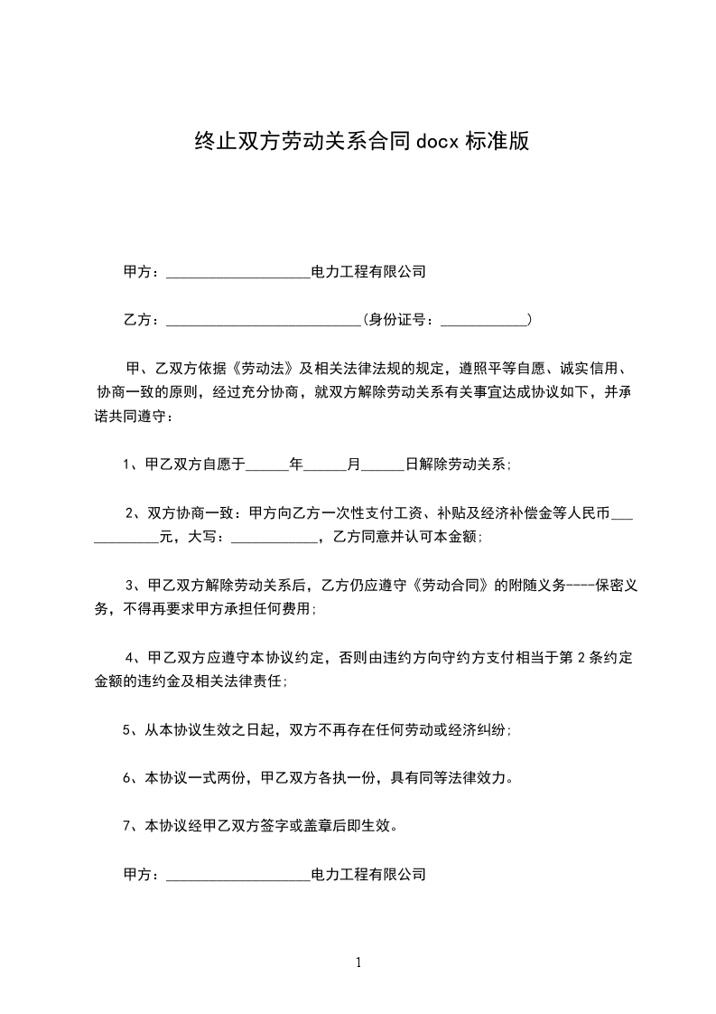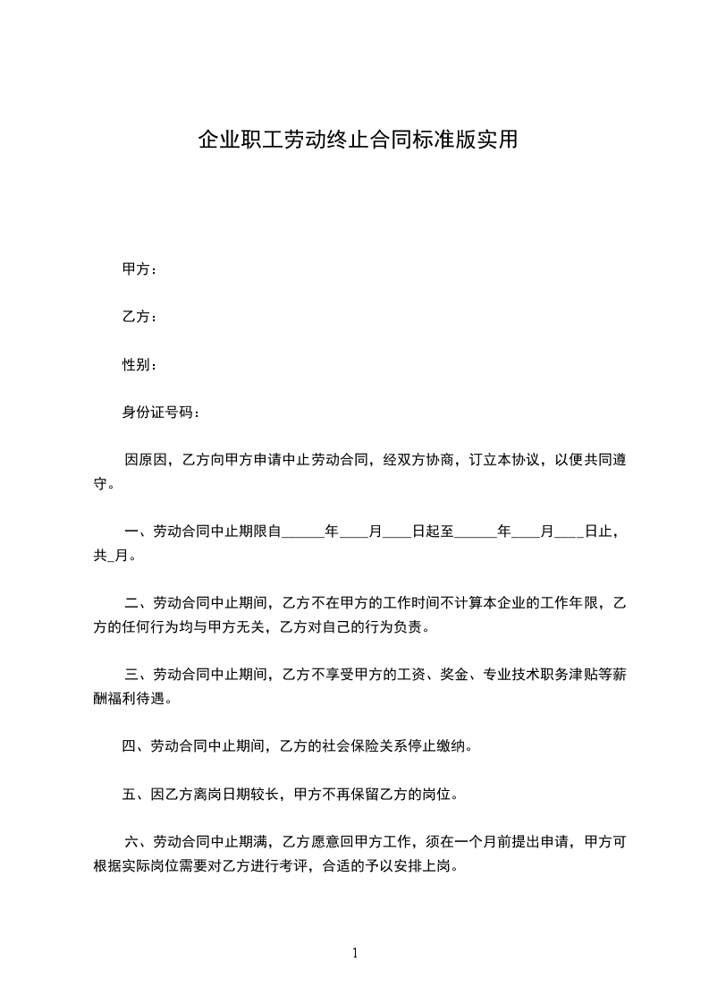 现因________使____方无法继续履行合同,经双方协商同意,该合同于_________年_________月____日予以终止。因终止合同给___方造成损失计__________元,由___方负责赔偿。赔偿金自_________年_________月___日起至_________年_________月___日止分___次付清,特此协议。