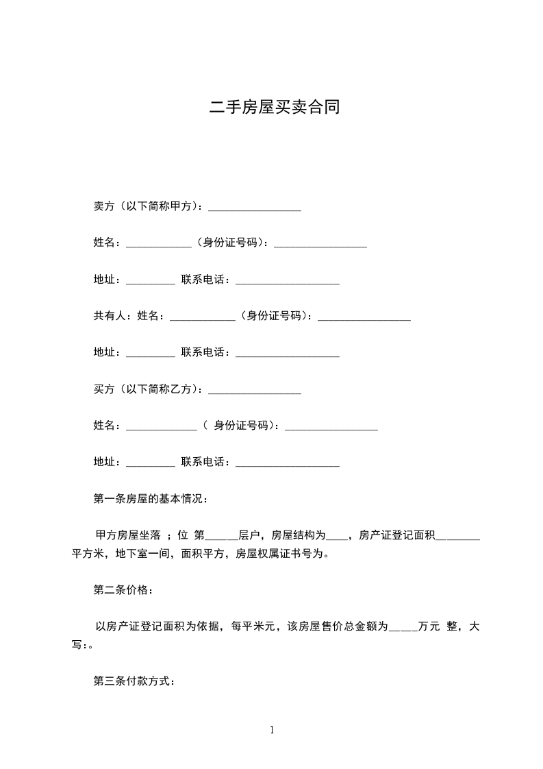 乙方 本合同签订之日向甲方支付定金___元整,大写:________, 日内交付_____万元 (大写),余款_____元 (大写)在房屋过户手续办理完毕之日支付。