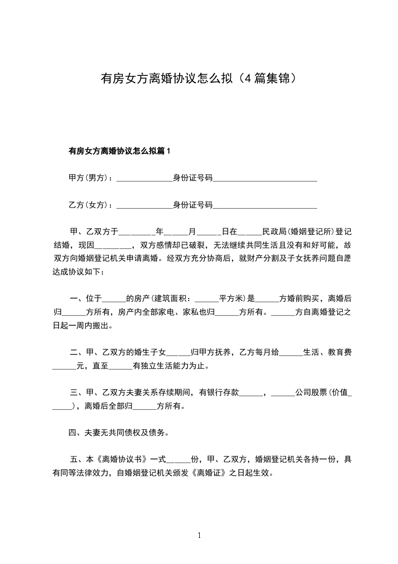 女方:______,女,汉族,______年______月______日生,住址__________________,联系电话__________________,身份证号码:__________________