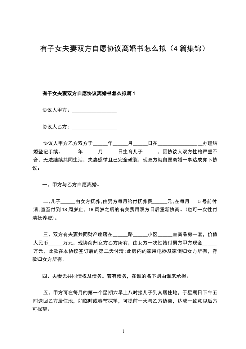 有子女双方协商离婚协议书怎么拟篇2