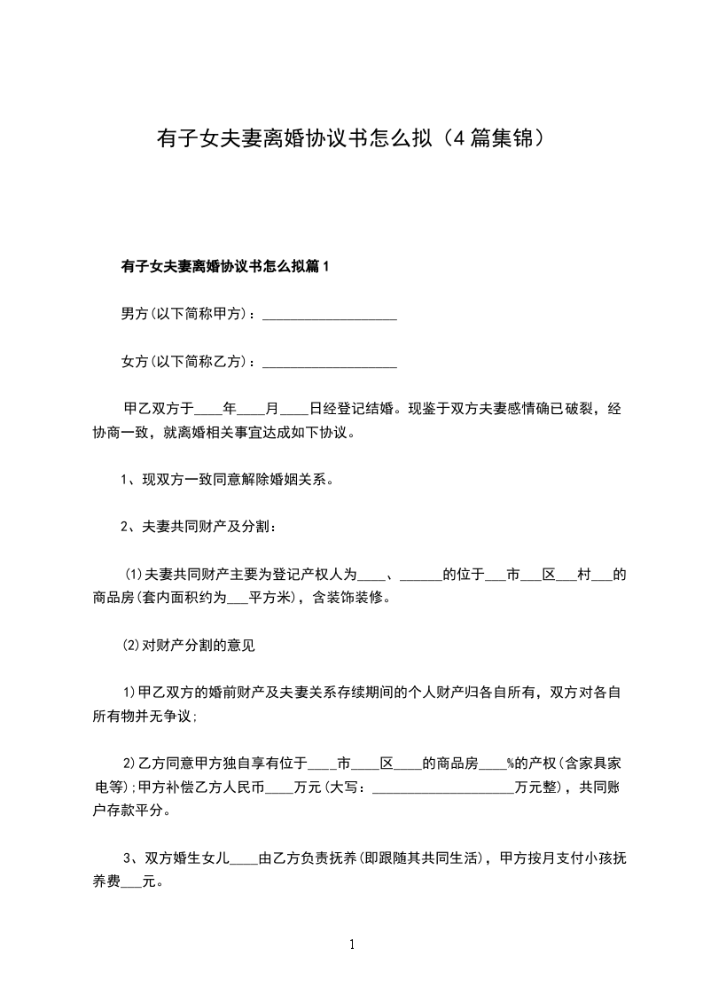 有子女双方协商离婚协议书怎么拟篇1
