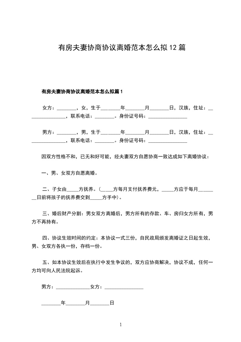 乙方(女方):_________,女,______年____月____日出生,汉族,住________市_____________路_____________________,身份证号:______________________