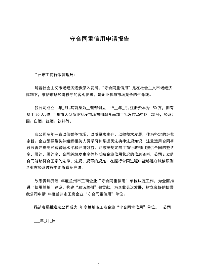 恳请贵局批准我公司成为 年度兰州市工商企业“守合同重信用”单位。__公司