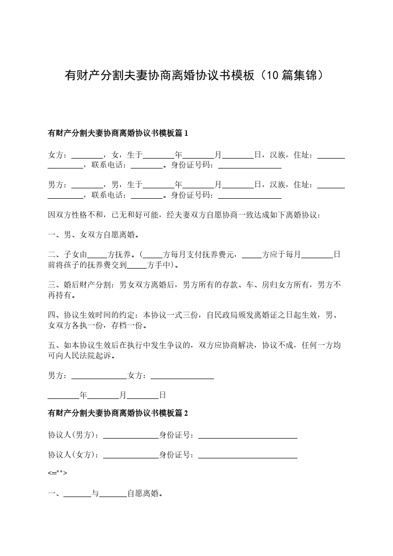 八、本协议一式三份,男、女双方各执一份,婚姻登记机关存档一份,自婚姻登记机颁发《离婚证》之日起生效。九、如本协议生效后在执行中发生争议的,双方应协商解决,协商不成,任何一方均可向相关人民法院起诉。