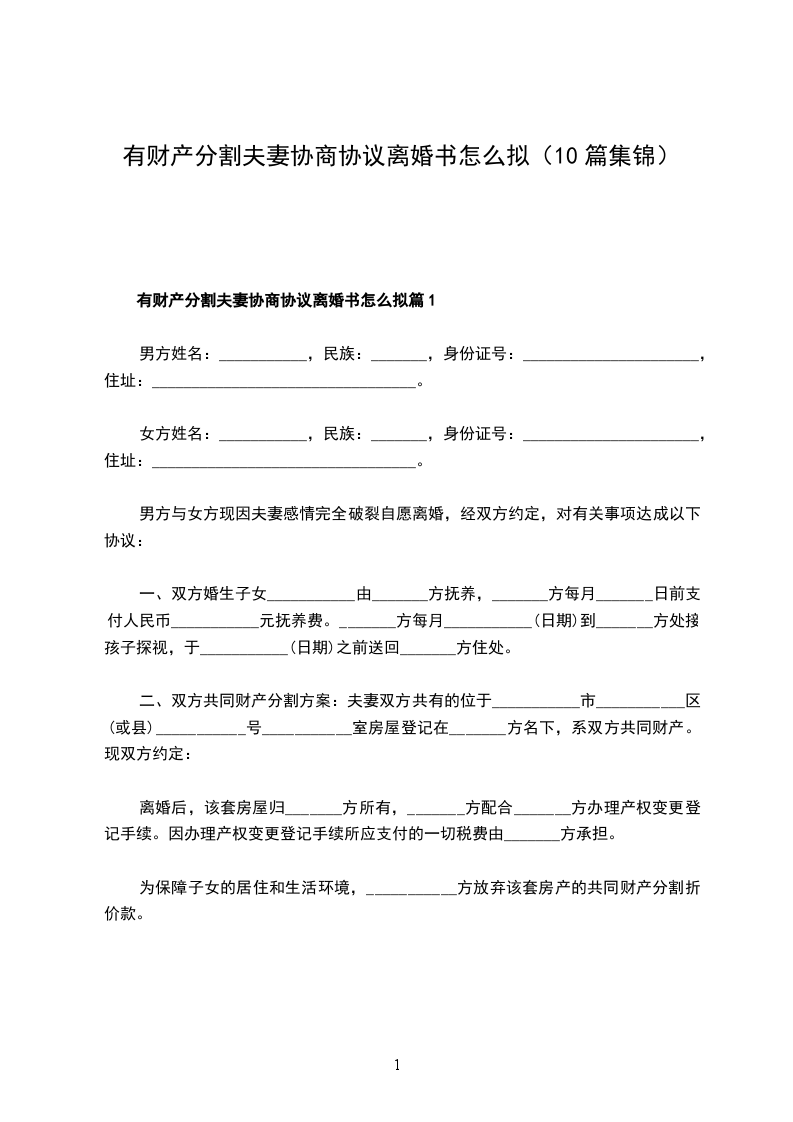 1、存款:双方名下现有银行存款共______元,双方各分一半,为______元。分配方式:各自名下的存款保持不变,但男方/女方应于_____年____月____日前一次性支付_____元给女方/男方。