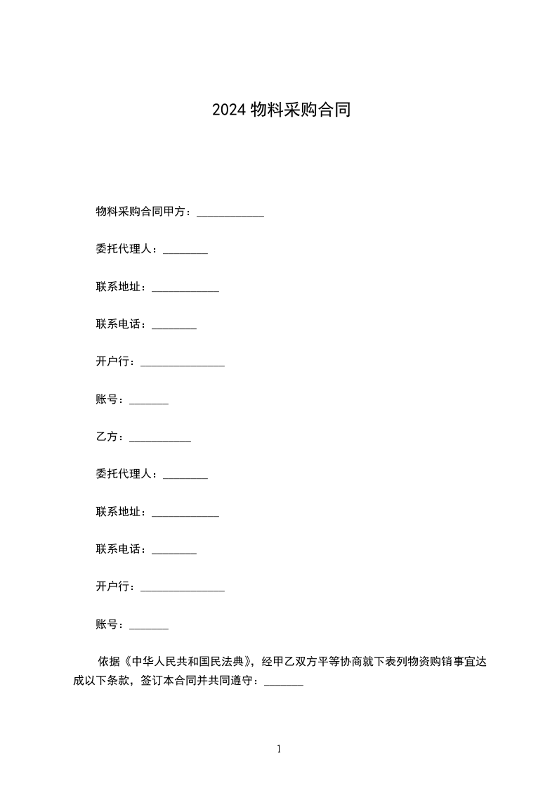 依据《中华人民共和国民法典》,经甲乙双方平等协商就下表列物资购销事宜达成以下条款,签订本合同并共同遵守: