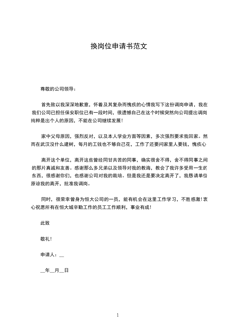 试用期期间,本人担任市场部助理职务。由于工作性质,决定了工作内容的繁杂,需要有耐心和细心来处理好日常事务。工作中,我始终积极配合领导和部门同事的工作,一丝不苟、任劳任怨。完成撰写各类办公文件,规范市场部管理制度;按时完成部门周、月工作总结及计划汇总;参加部门及公司各种会议,认真按时完成会议纪要撰写;部门人员招聘;完成合同及其他文件归档整理;完成部门人员报销、办公用品申领及保管等一切事务性本人xxxx,因xxxxxxx,在原岗位工作深感吃力,已难相适应,为不影响响xxx整体效益,特请求xxxx照顾本人身体条件,给予调换至xxx工作(工种)岗位,本人将在新岗位尽已最大能力做好工作。敬请审核批准。