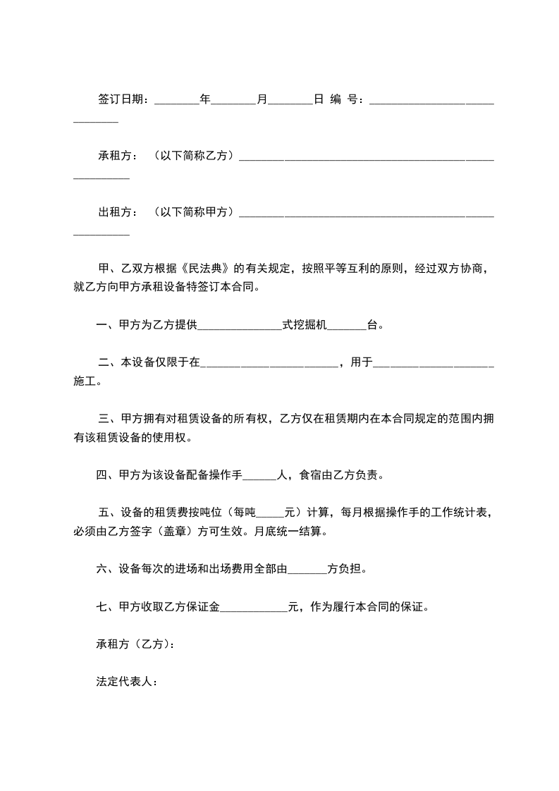 一、甲方为乙方提供_______________式挖掘机_______台。