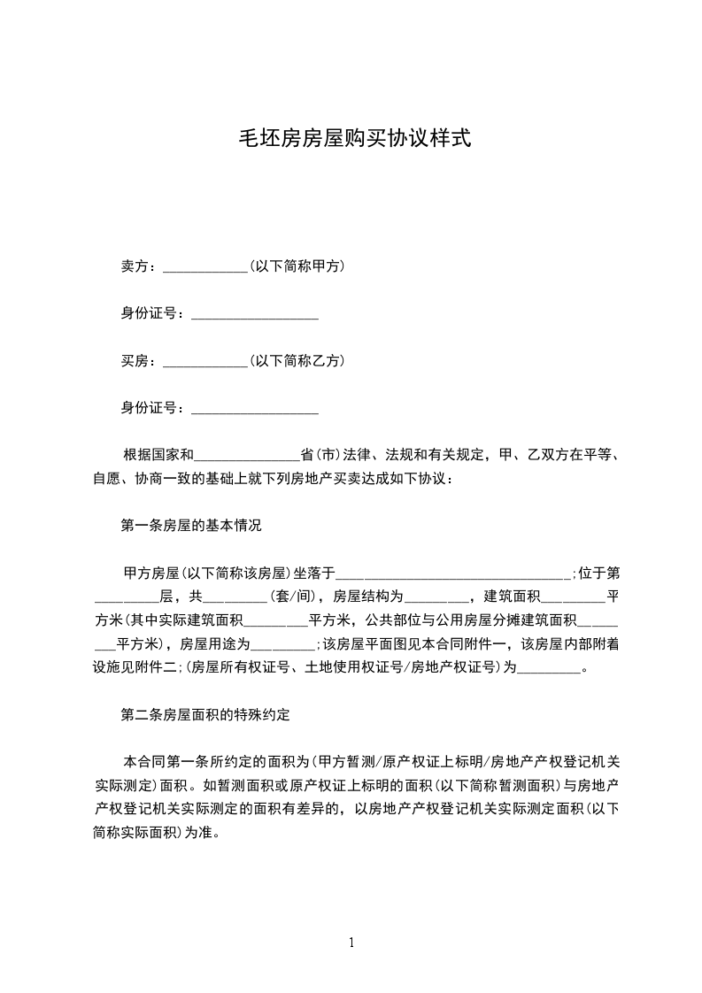 第二条房屋面积的特殊约定