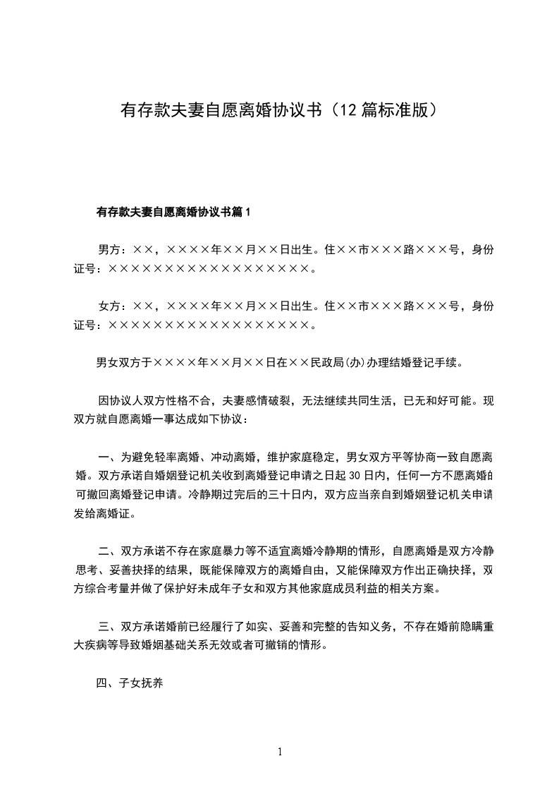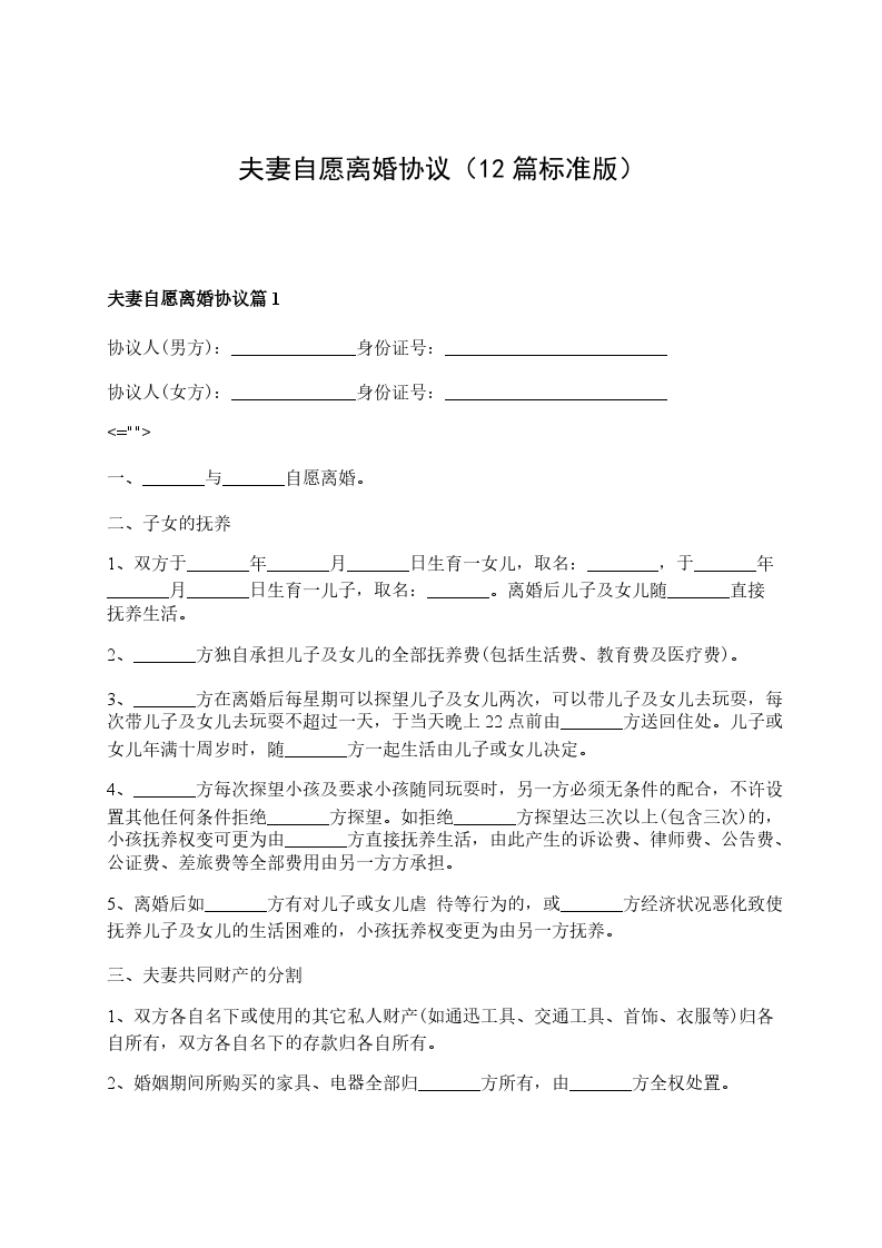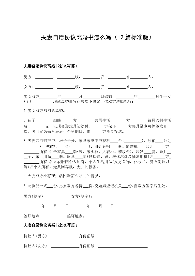 夫妻自愿离婚协议参考格式篇12