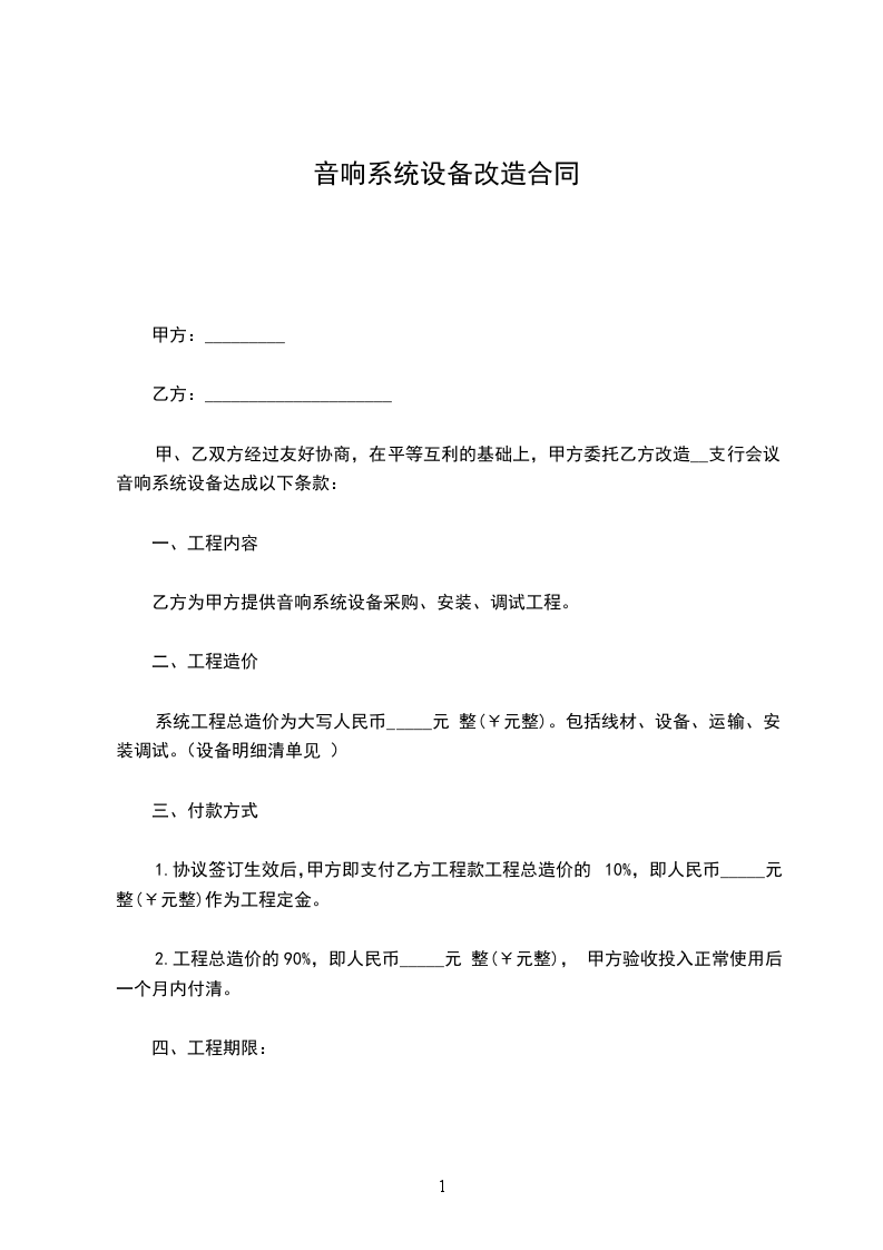 甲、乙双方经过友好协商,在平等互利的基础上,甲方委托乙方改造__支行会议音响系统设备达成以下条款:
