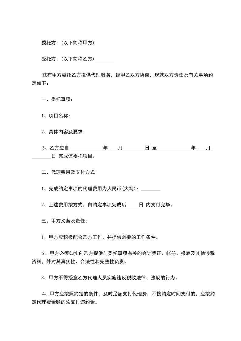 委托方(甲方):_________代理方(乙方):_________