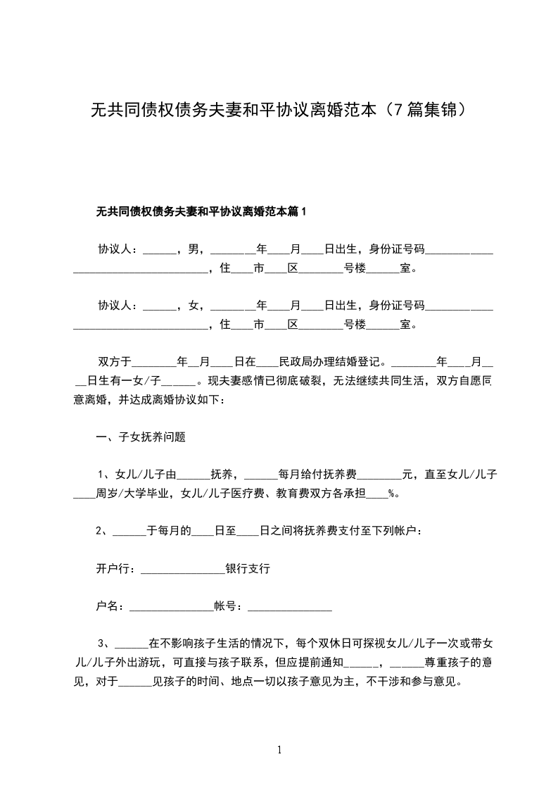 □双方确认在婚姻关系存续期间没有发生任何共同债务,任何一方如对外负有债务的,由负债方自行承担。
