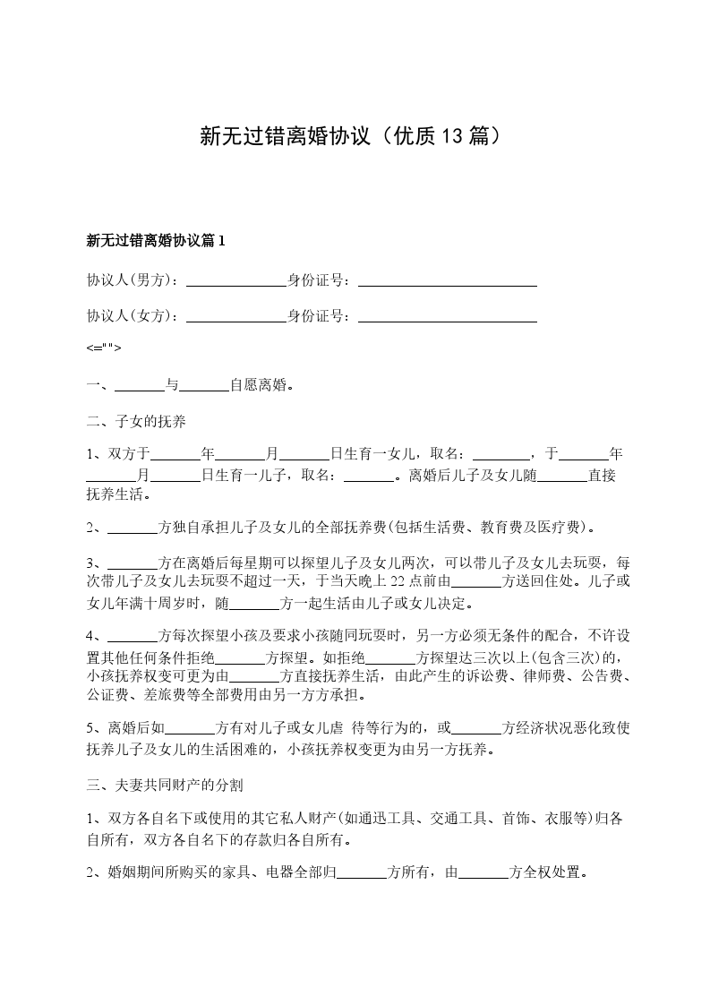 最新无过错协议离婚书如何写篇13