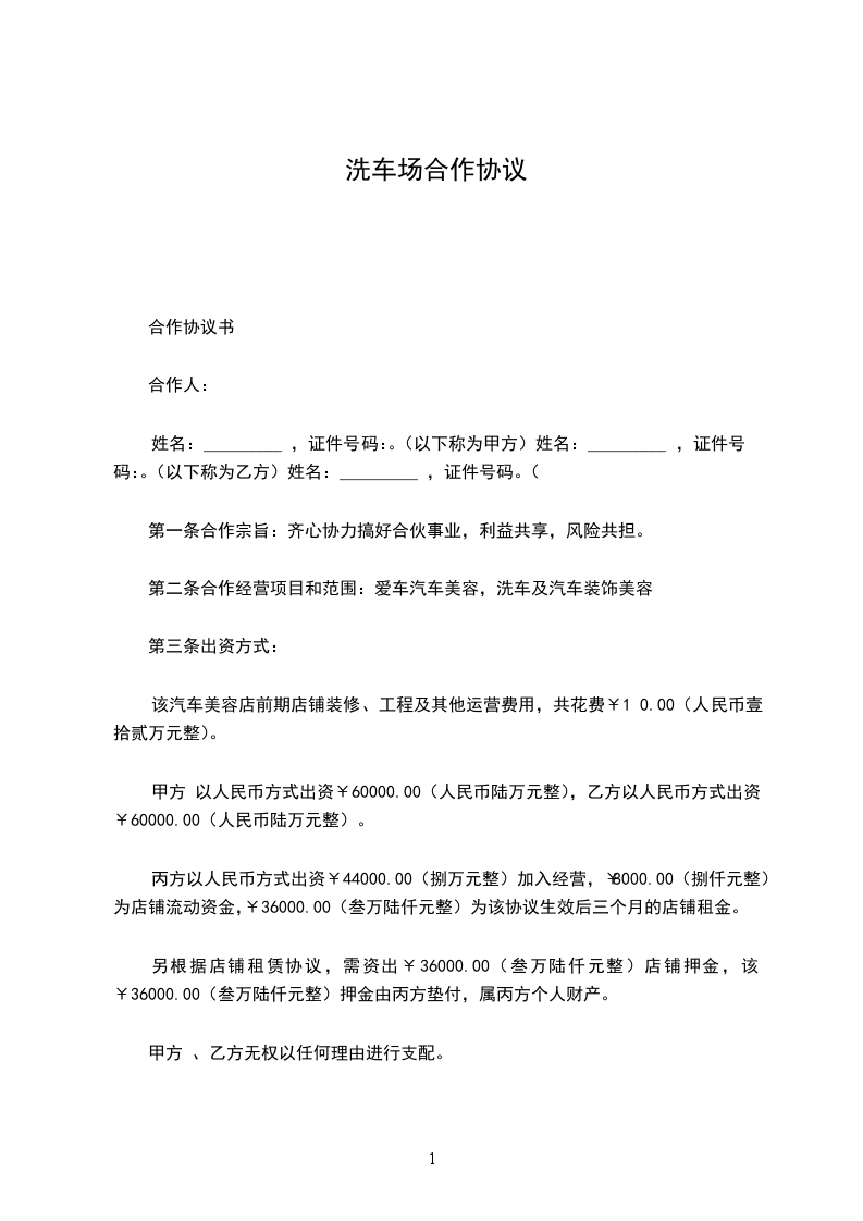 第二条合作经营项目和范围:爱车汽车美容,洗车及汽车装饰美容