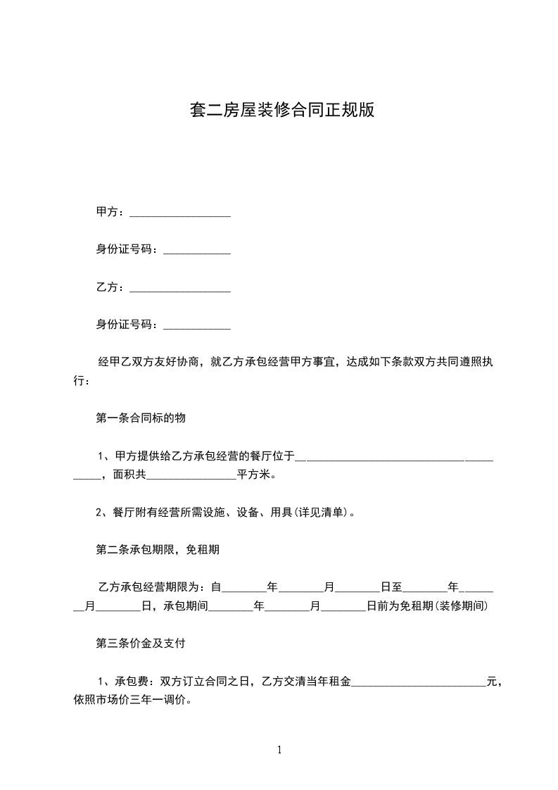 1、承包费:双方订立合同之日,乙方交清当年租金________________________元,依照市场价三年一调价。