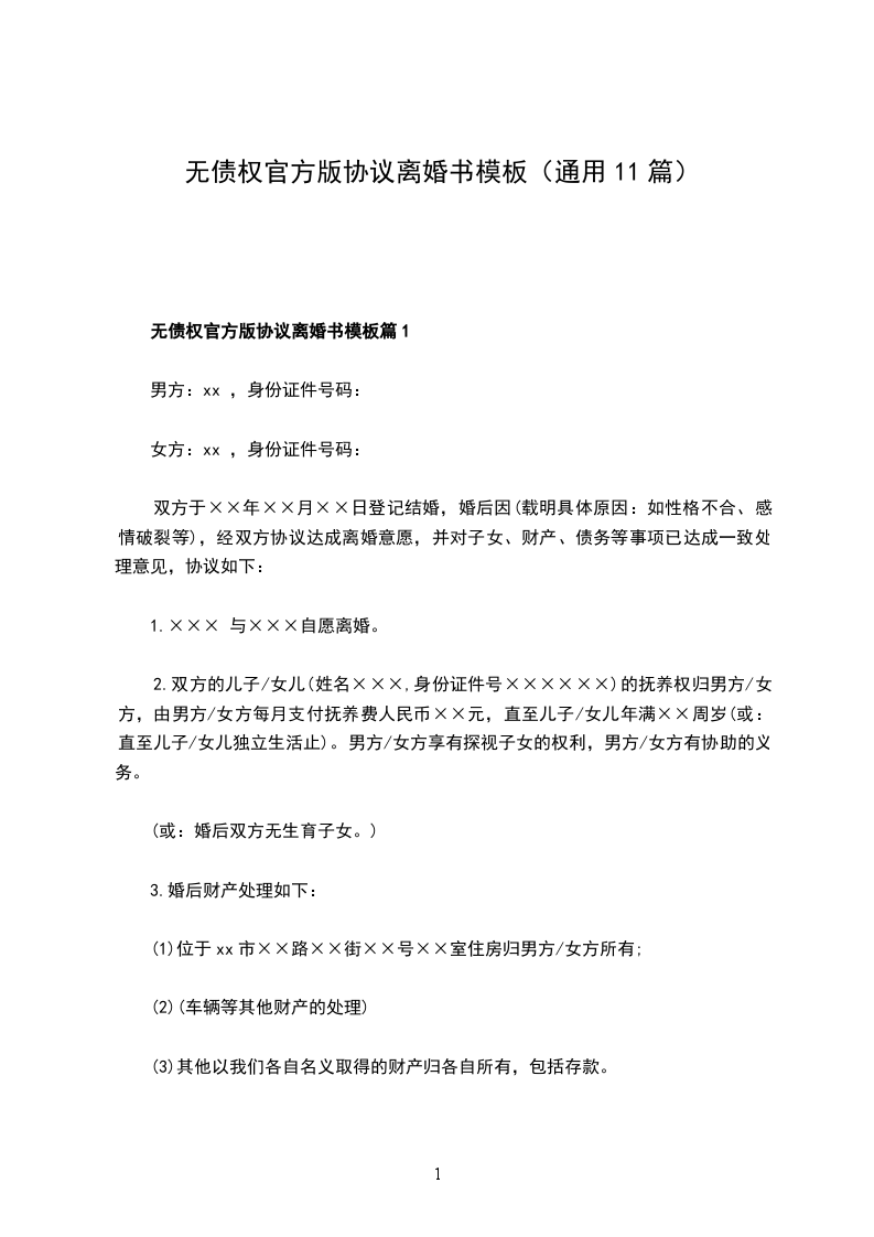 1、甲乙双方确认在婚姻关系存续期间无共同债务;