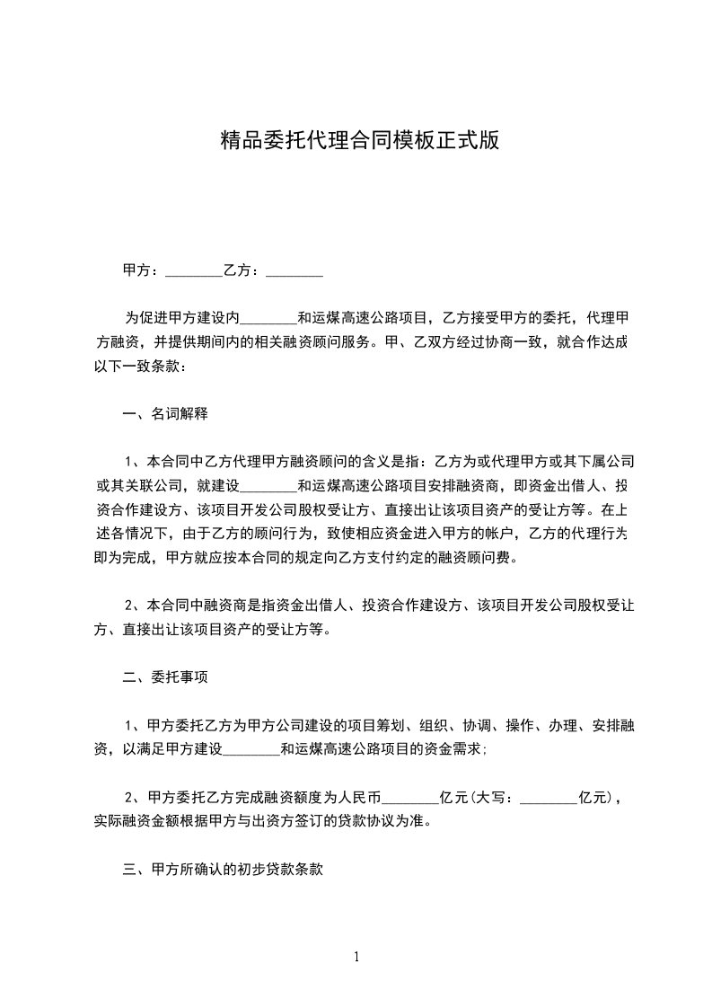 为促进甲方建设内________和运煤高速公路项目,乙方接受甲方的委托,代理甲方融资,并提供期间内的相关融资顾问服务。甲、乙双方经过协商一致,就合作达成以下一致条款: