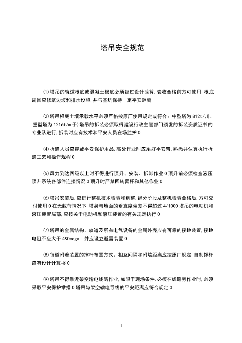 8、不工作时将变幅小车运行至吊臂根部,并将吊钩开起靠近小车,以利 臂架随风转动。