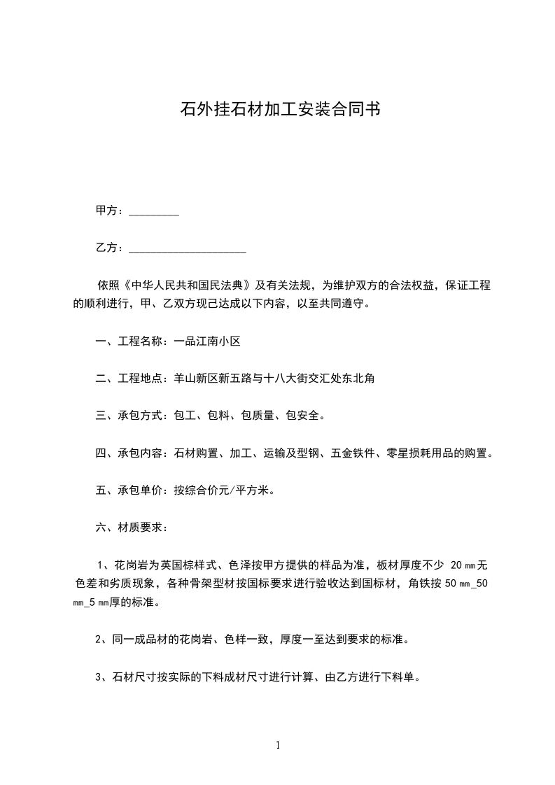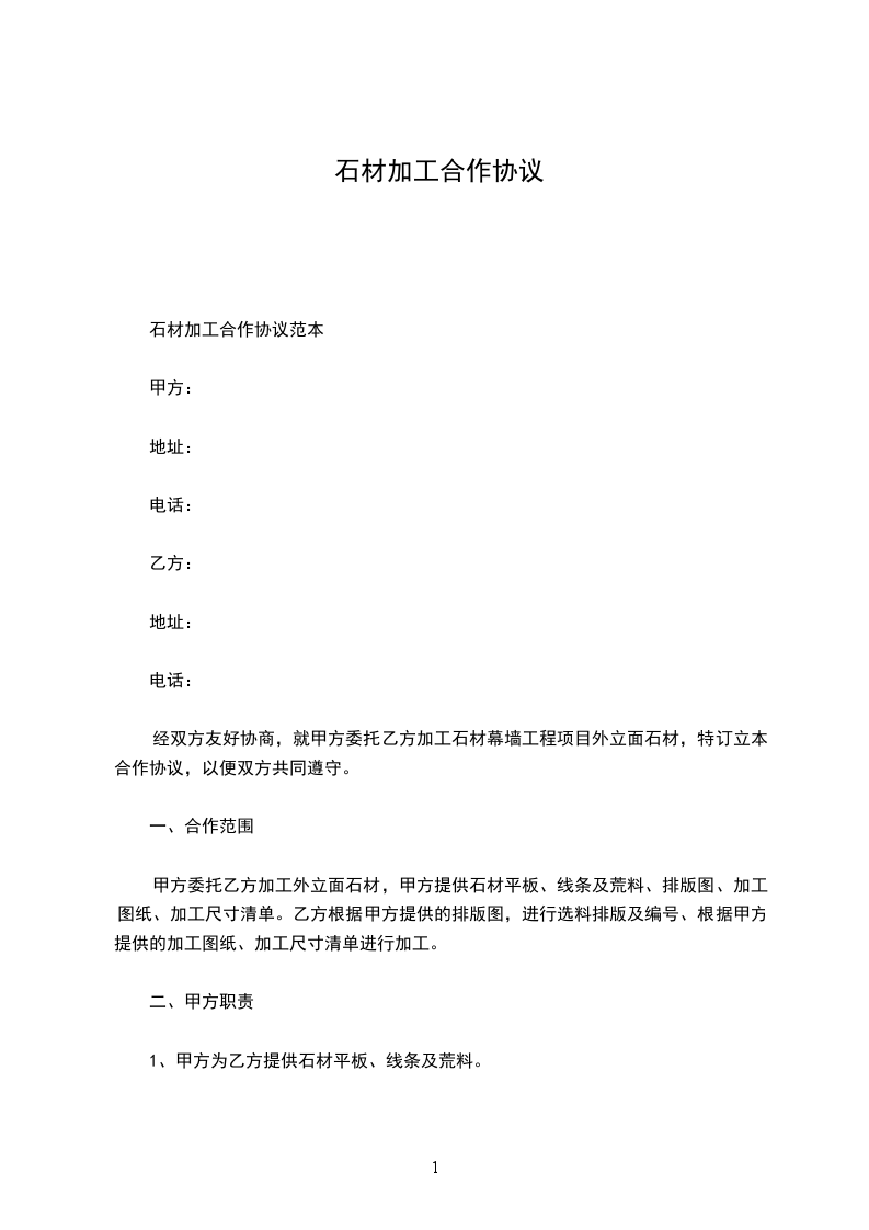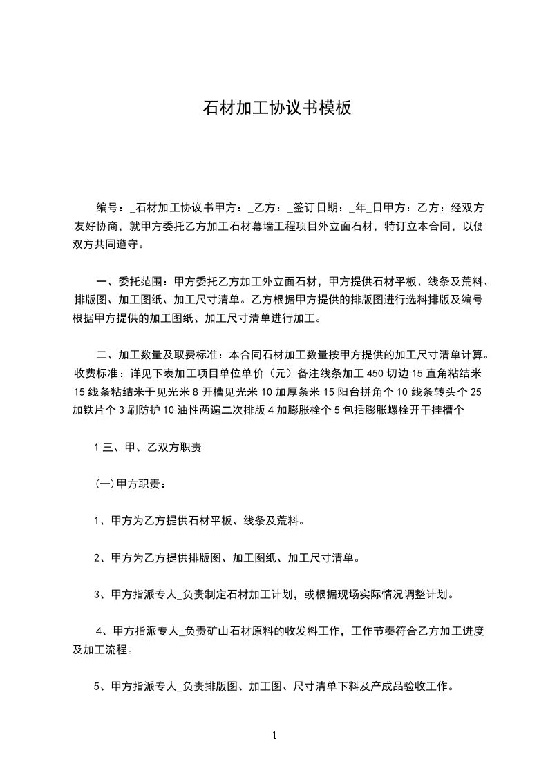 石材加工合同