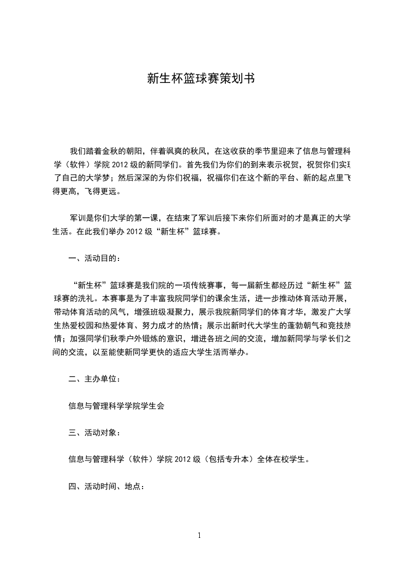 军训是你们大学的第一课,在结束了军训后接下来你们所面对的才是真正的大学生活。在此我们举办2024级“新生杯”篮球赛。