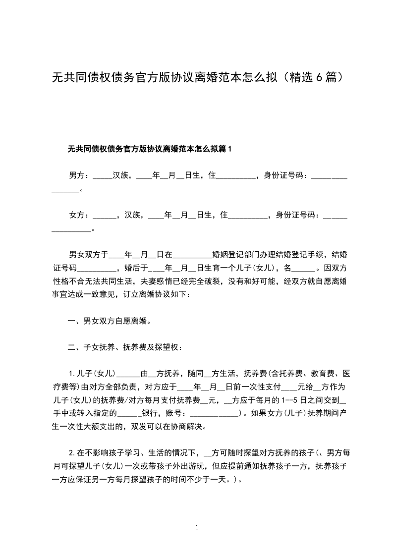 无共同债权官方版离婚协议怎么拟篇1
