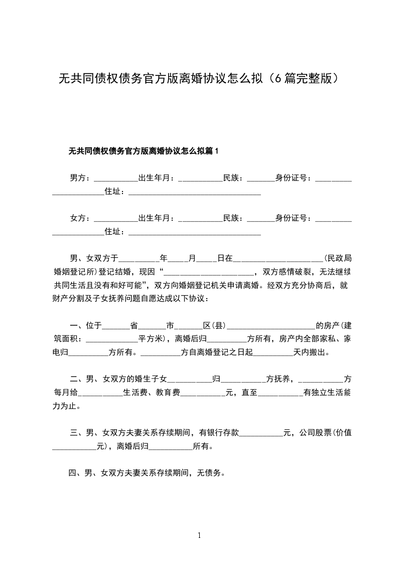 无共同债权官方版离婚协议怎么拟篇5