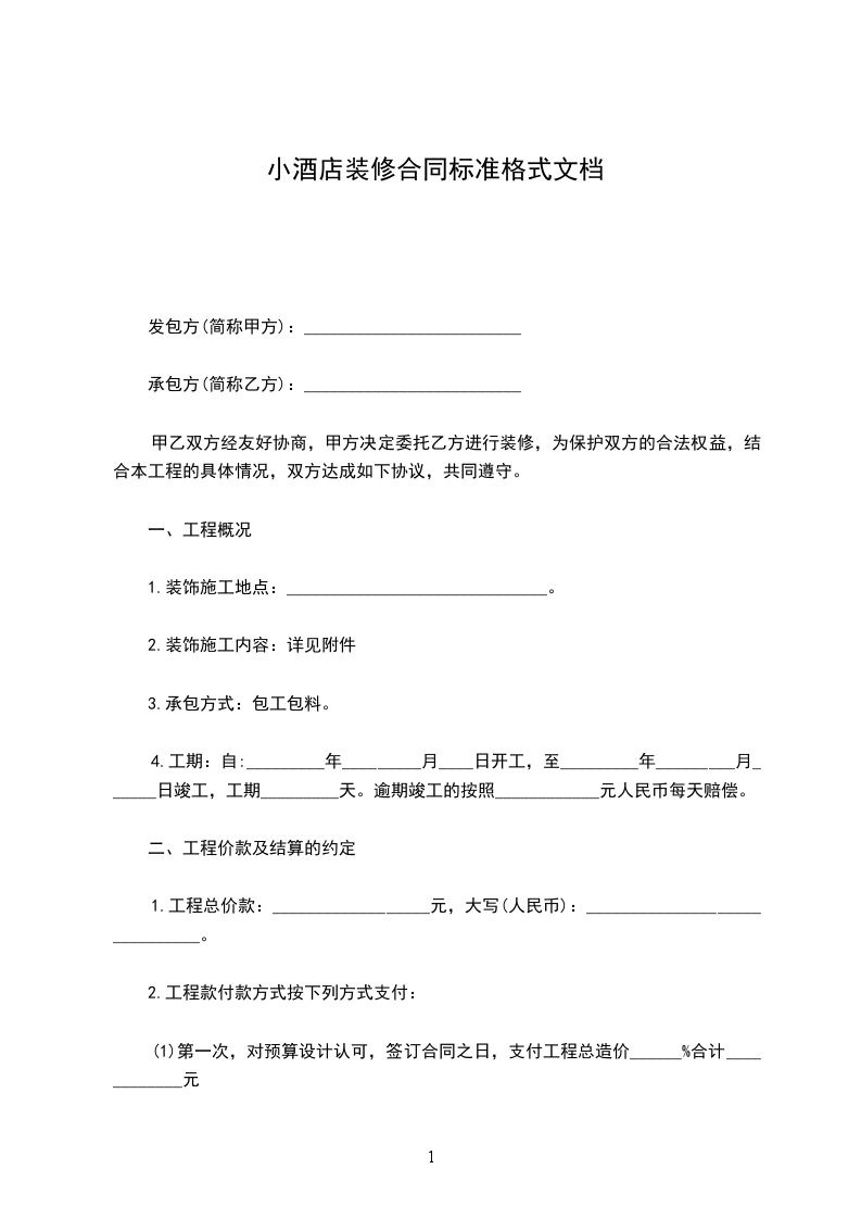 (1)第一次,对预算设计认可,签订合同之日,支付工程总造价______%合计____________元