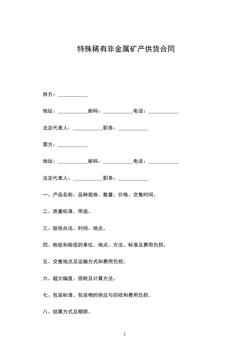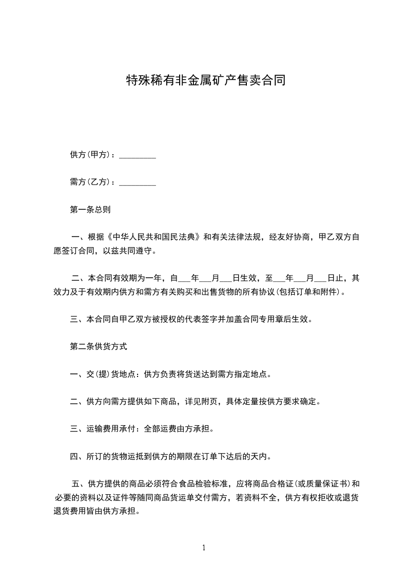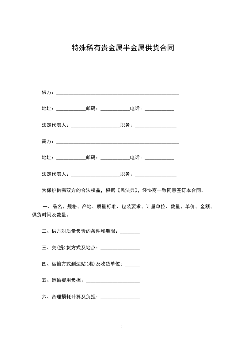 特殊稀有贵金属半金属购销合同