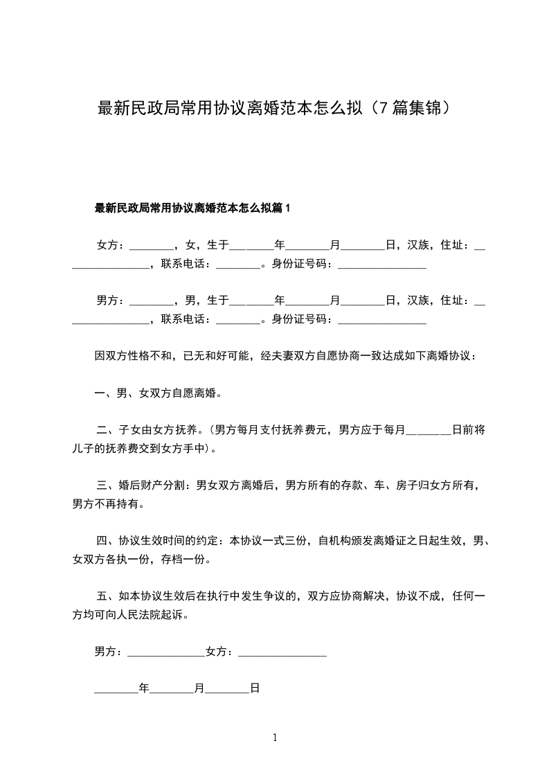 7.本协议一式三份,男女双方各持一份,婚姻登记机关存档一份。
