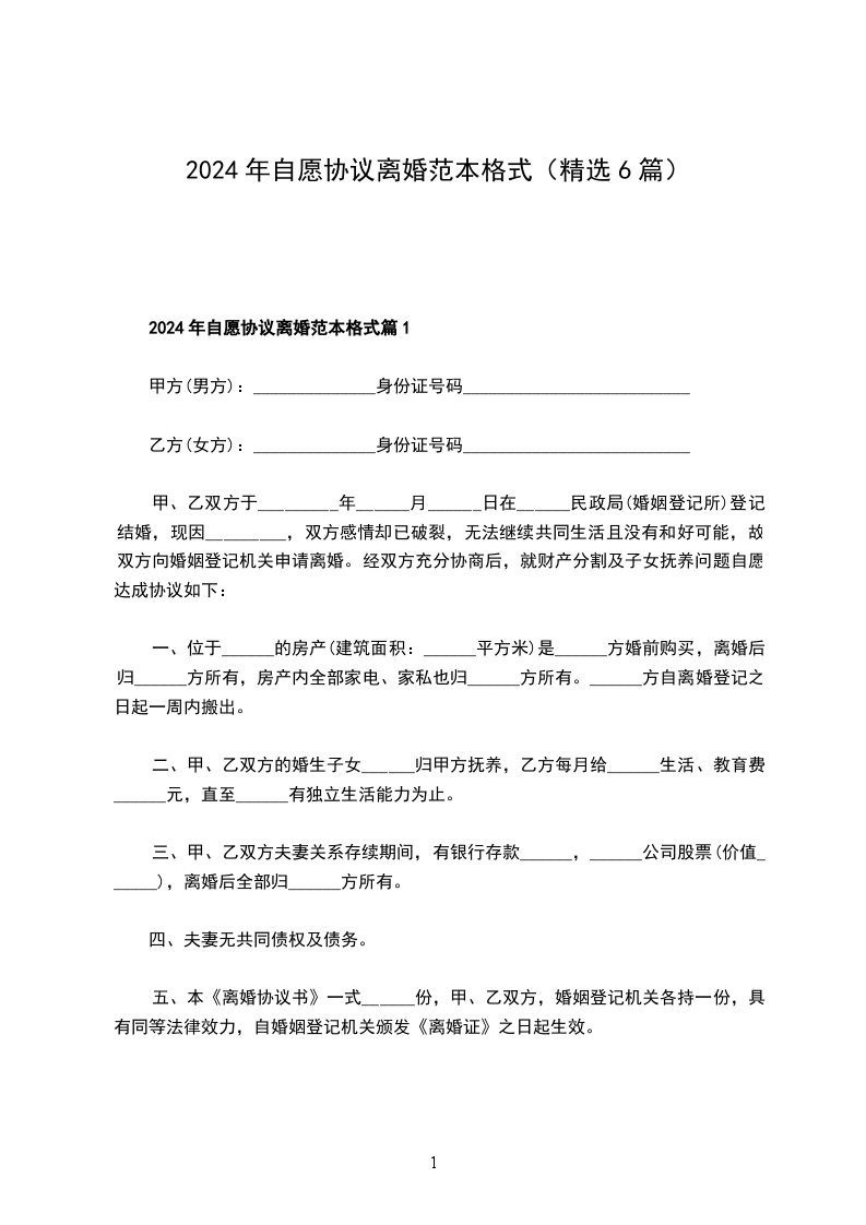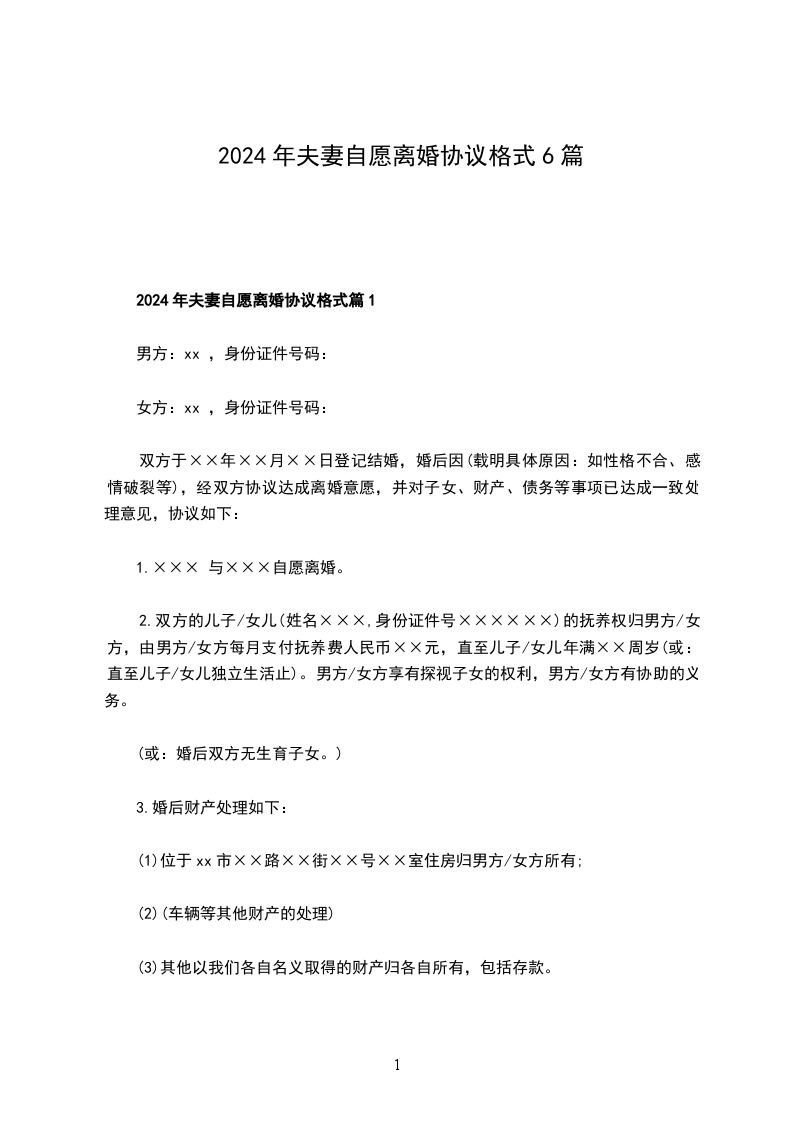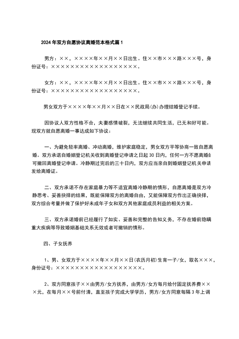2024自愿协议离婚范本格式篇1