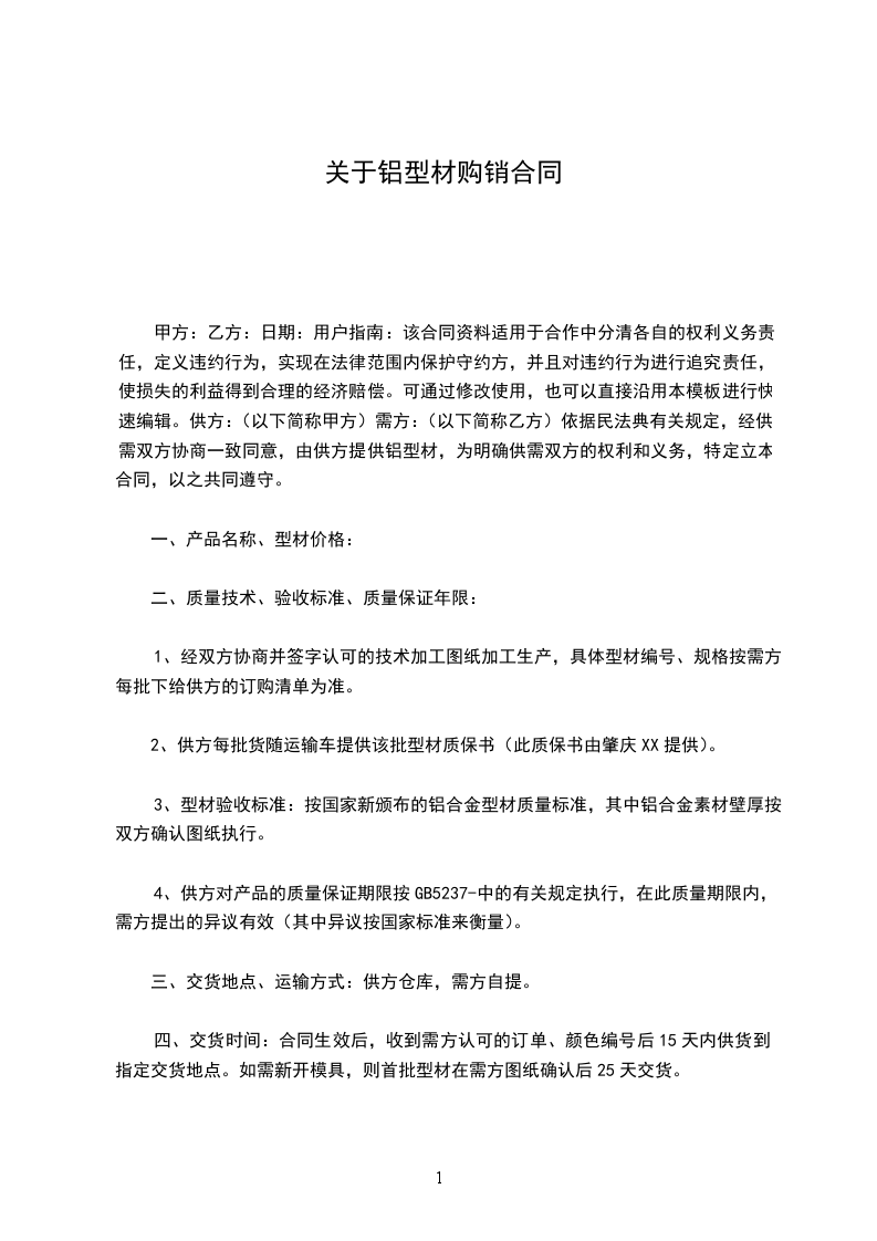 一、 甲方为乙方提供乙方铝合金门窗型材。工程材料____________吨。