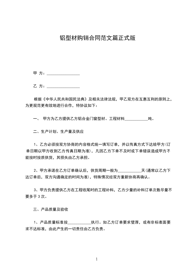 铝锭价以乙方下单当天铝锭价为准,星期六、星期天以下星期一为准。如遇上较长的节假日,以节前双方协商报价为准。铝锭价以南海报价为准(中间价)喷涂铝型材(常规色):_________________铝锭价+加工费 ____________元/吨(特殊颜色另议)幕墙料在原工艺基础单价+____________元/T以上成品包装按贴膜光身包装,特殊包装另议。