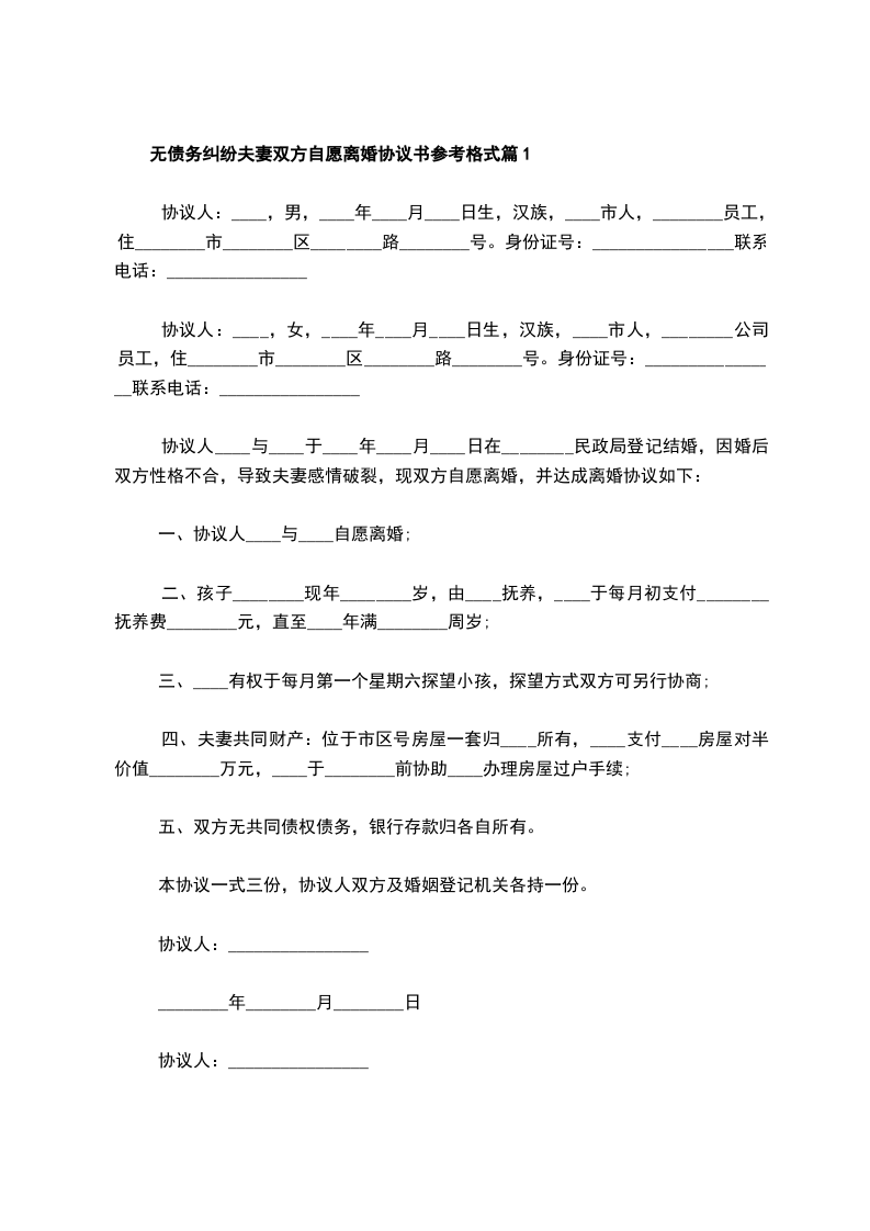 无债务纠纷夫妻双方自愿协议离婚书篇1