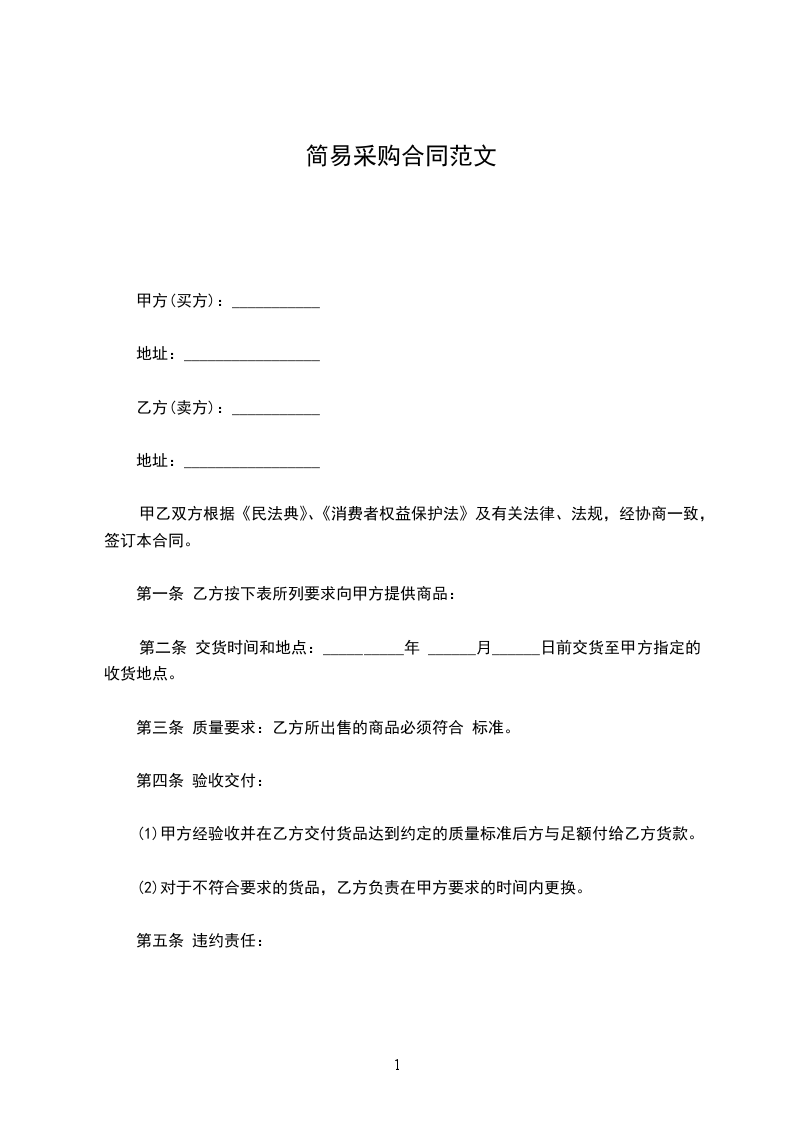第二条 交货时间和地点:__________年 ______月______日前交货至甲方指定的收货地点。