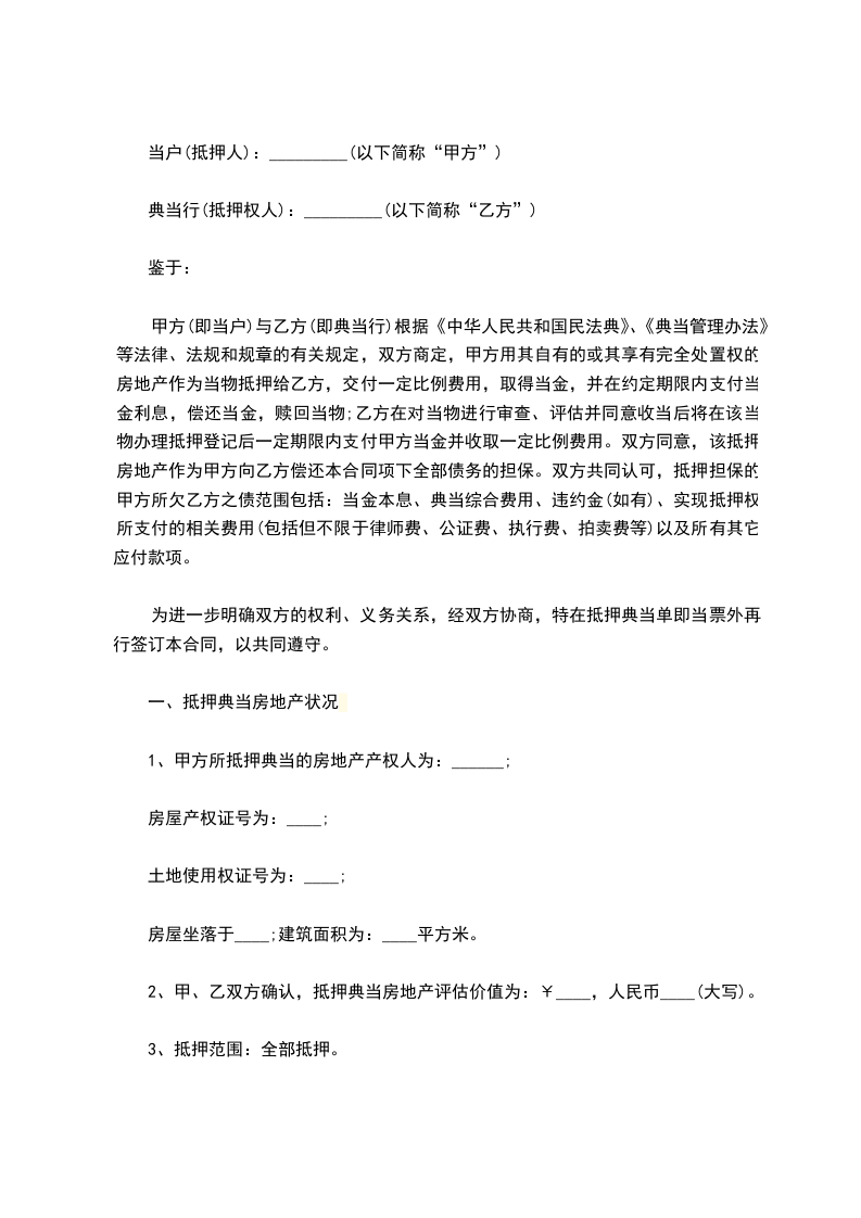 二、抵押协议