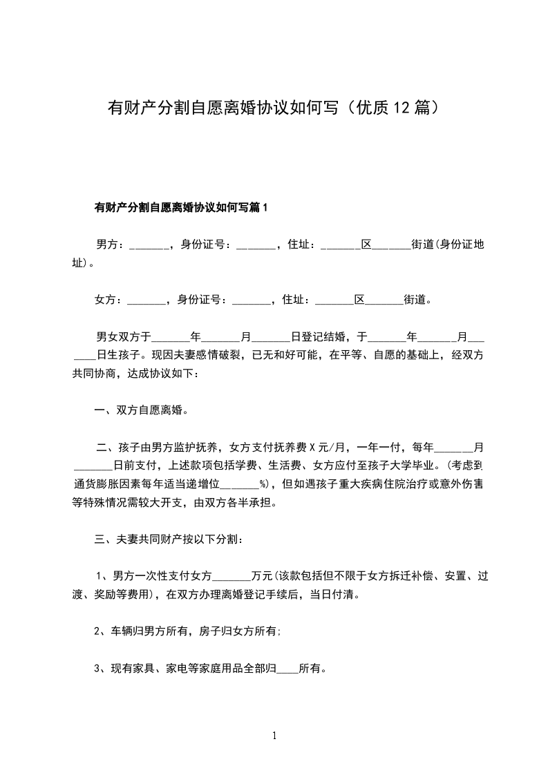 有财产自愿离婚协议篇12