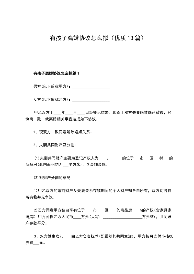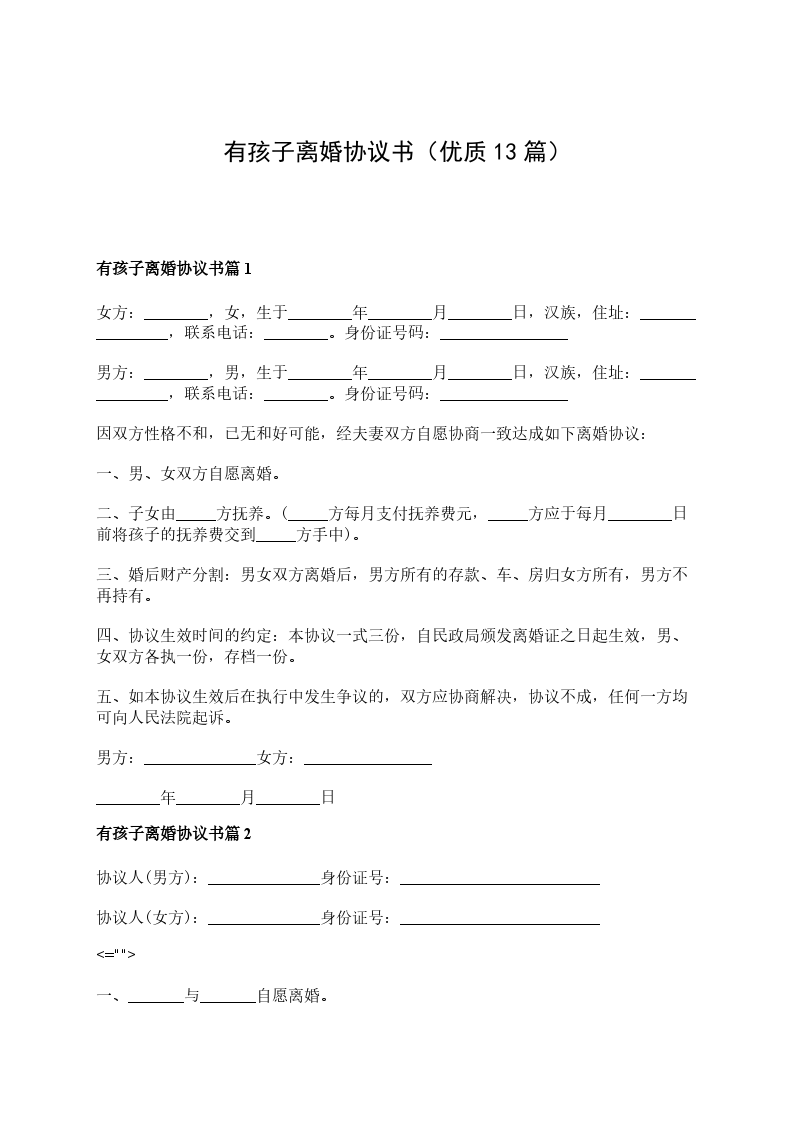 有孩子官方版离婚协议范文篇13