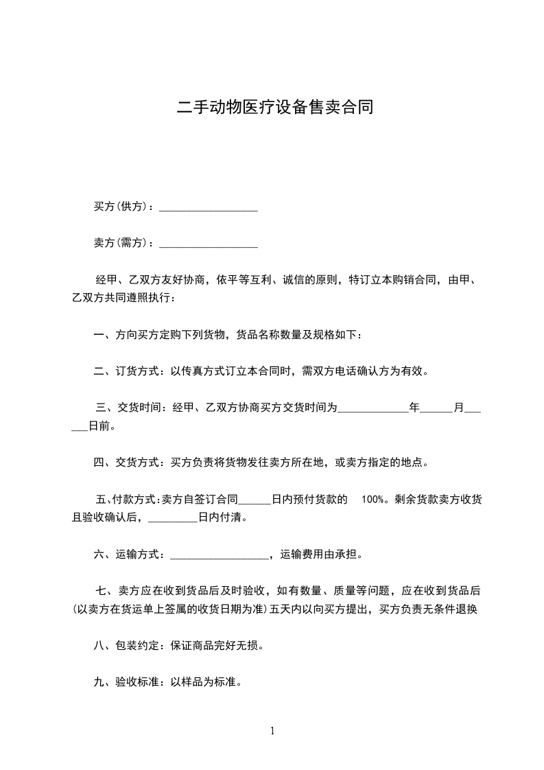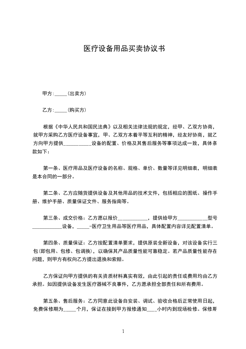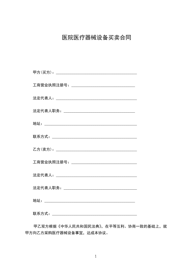 就乙方给甲方提供医疗设备合同一事,经甲、双方友好协商,特制定以下合同条款: